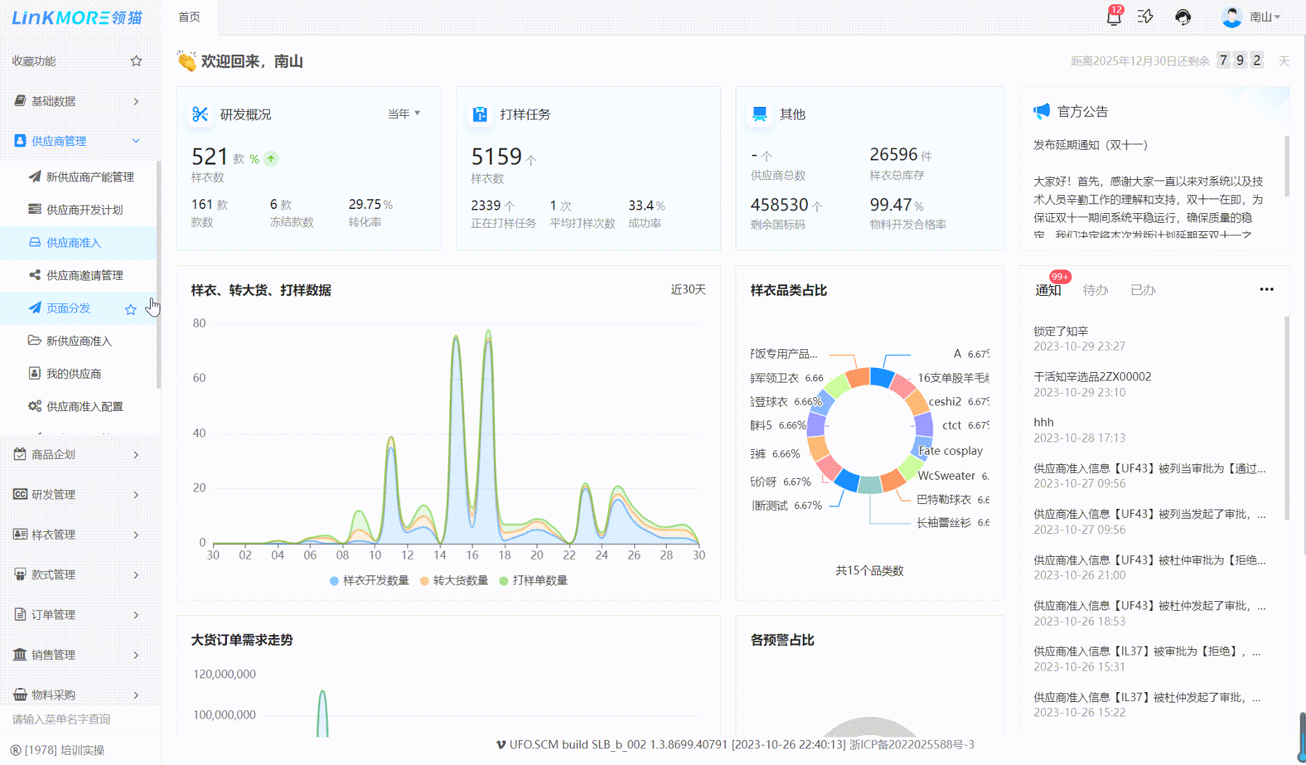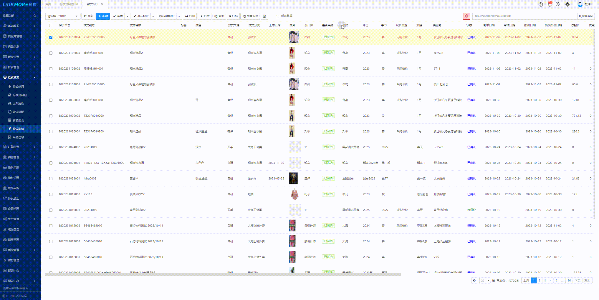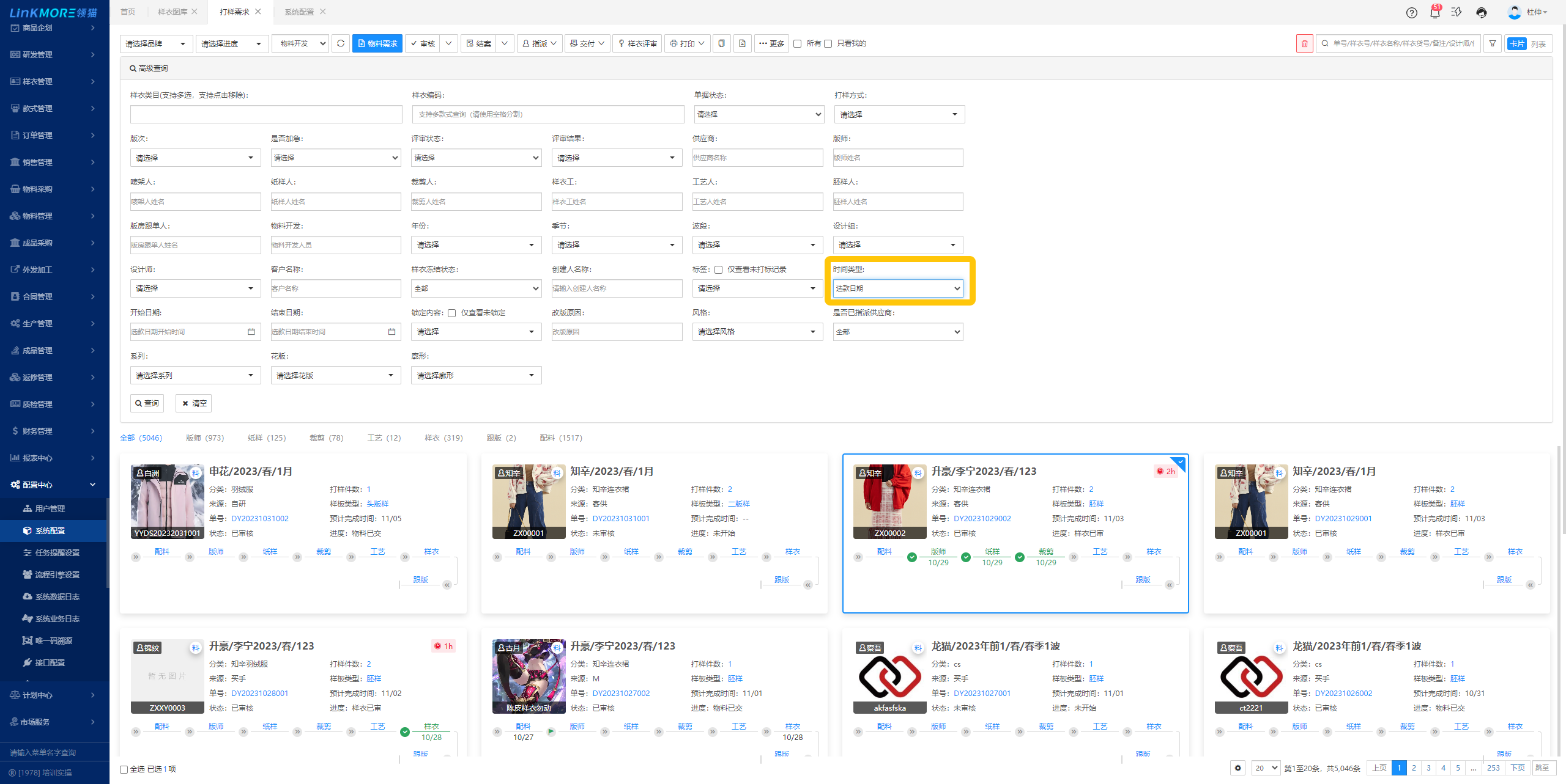 功能说明:打样需求/标准资料包/吊牌信息,增加选款日期筛选条件