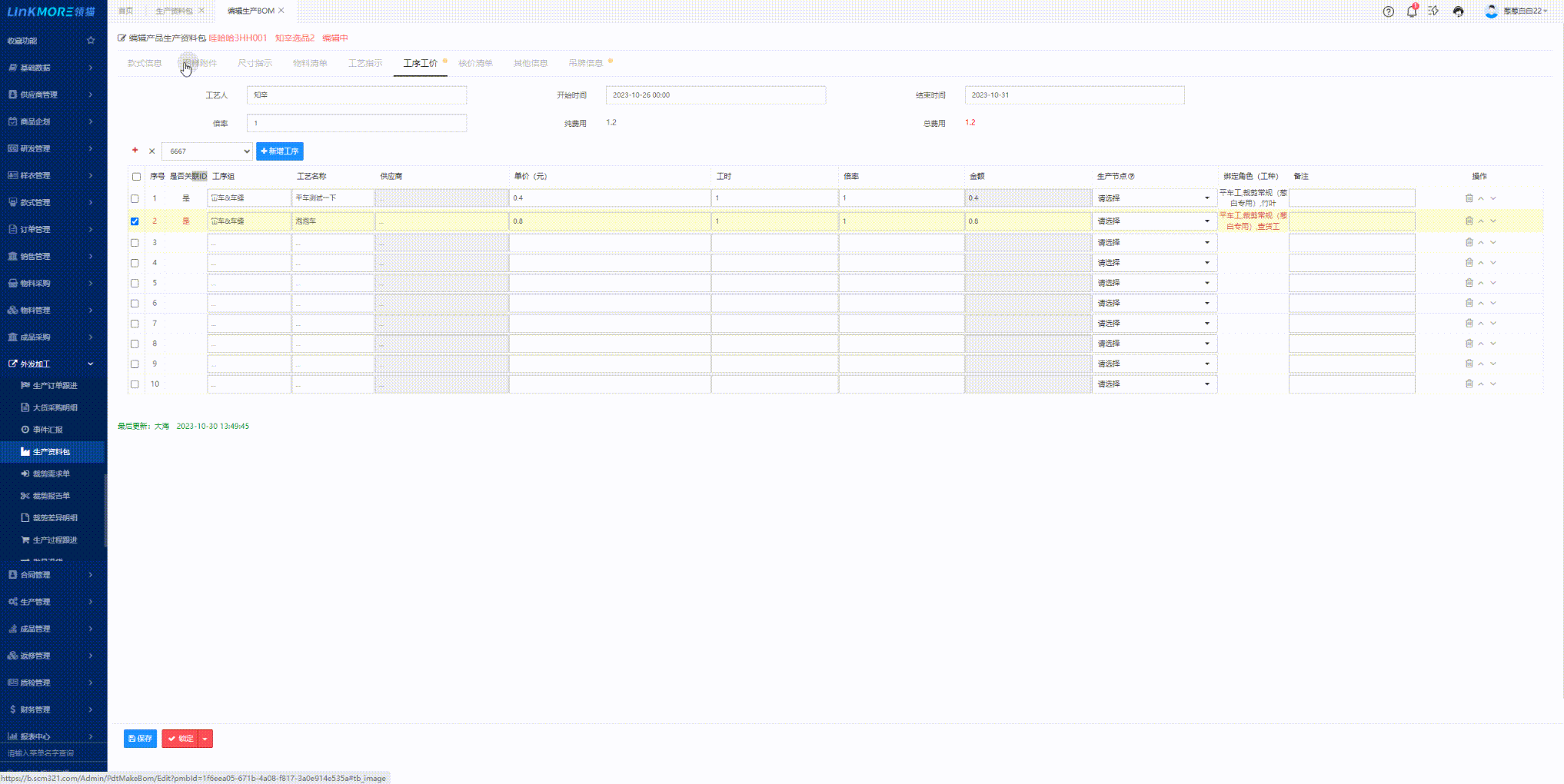 功能说明:资料包添加工序,限制其没有绑定工序id时不给保存