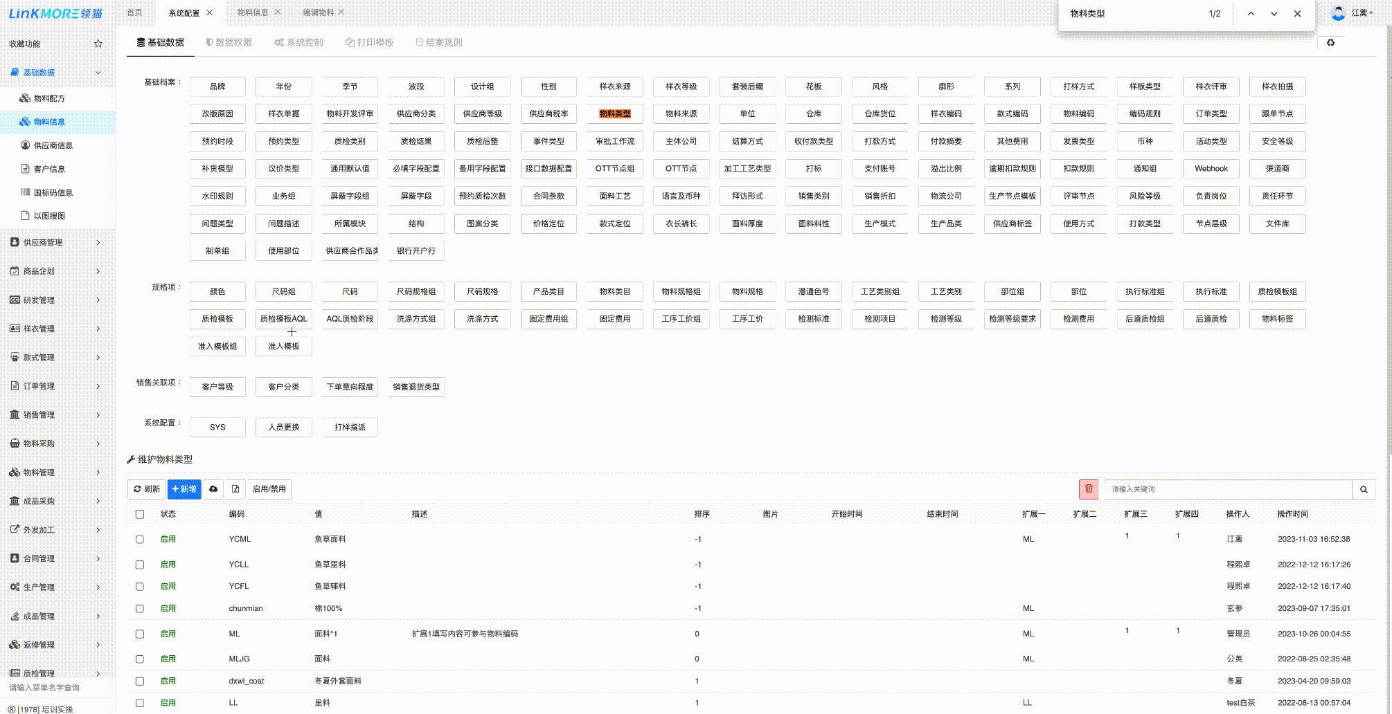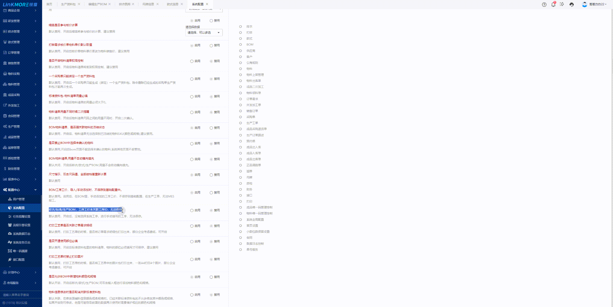 功能说明:增加配置,支持按照物料类型配置颜色/规格是否必填