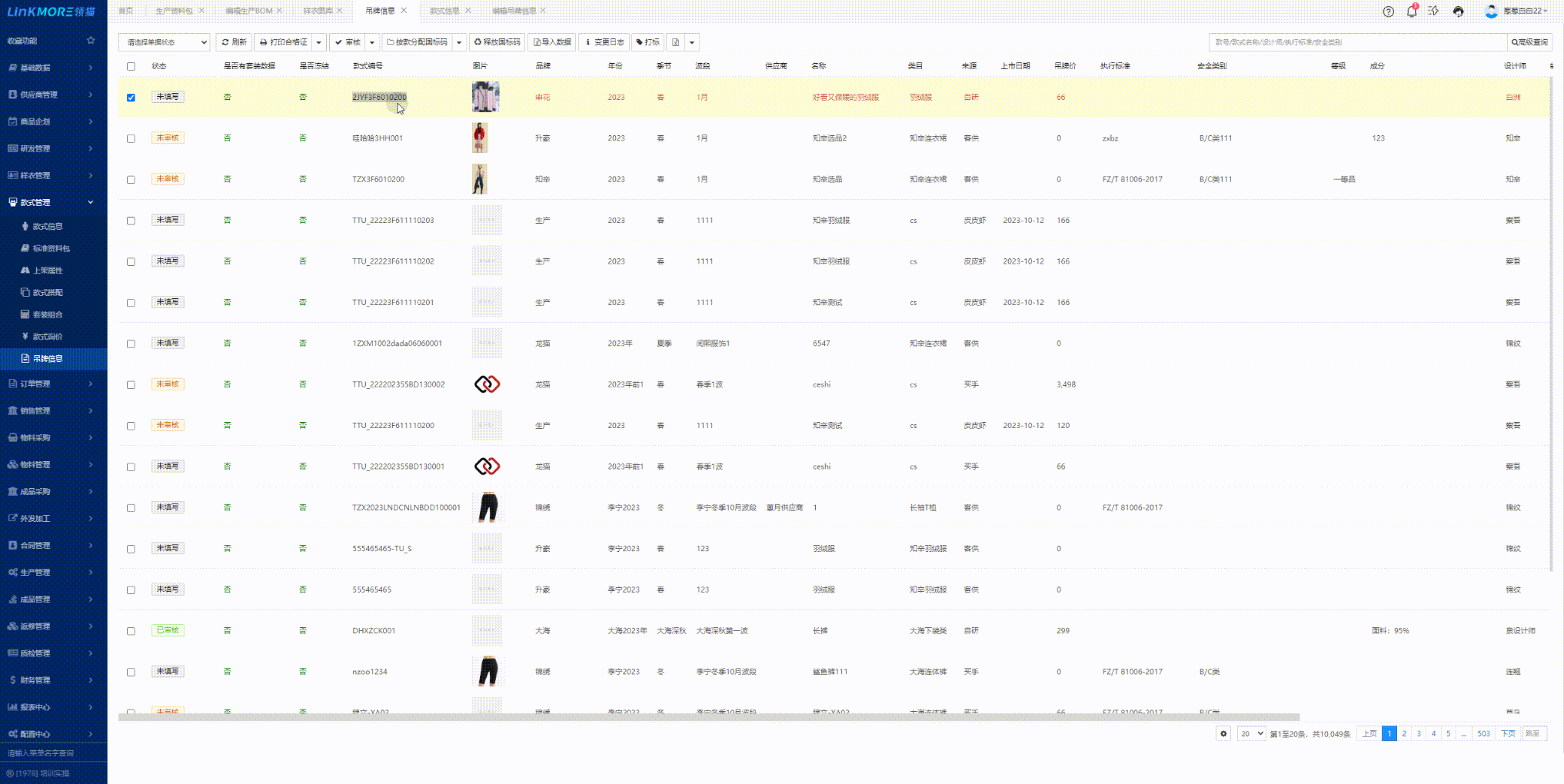 功能说明:【微辣】款式信息套装后缀增加搜索框