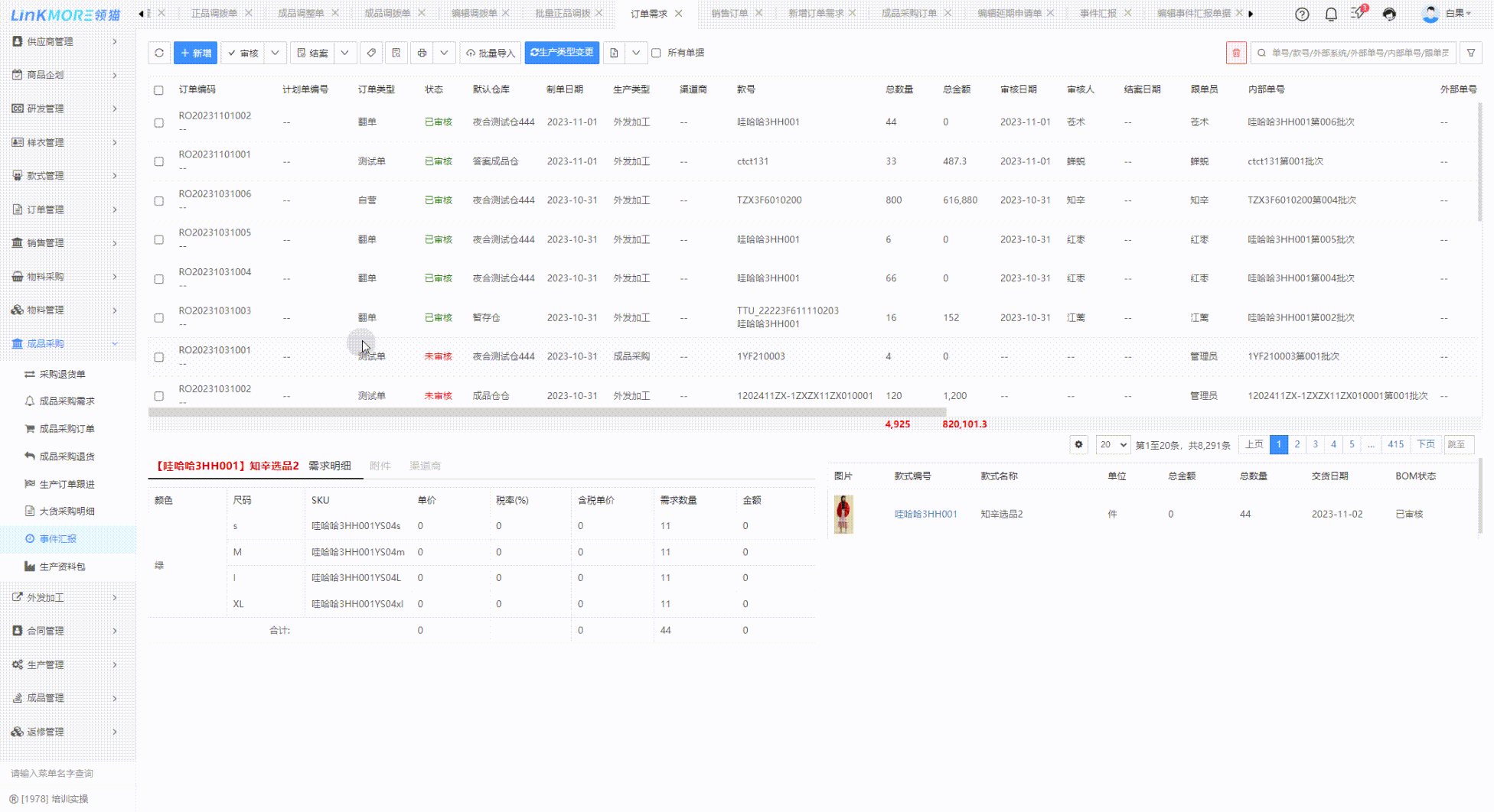 功能说明:打样需求审核触发审批流之后再删除,主界面的待办不会消失。