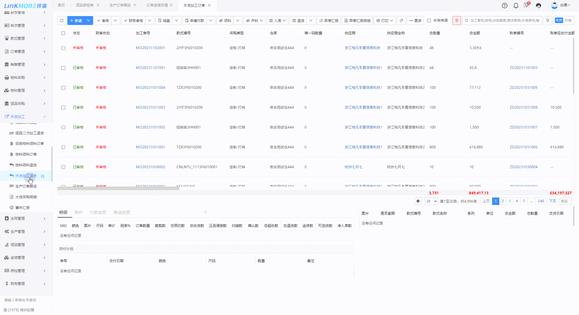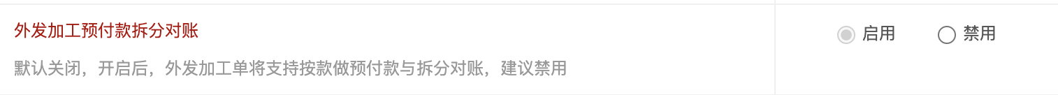 功能说明:外发加工单支持按款做预付款与按款做对账结算。