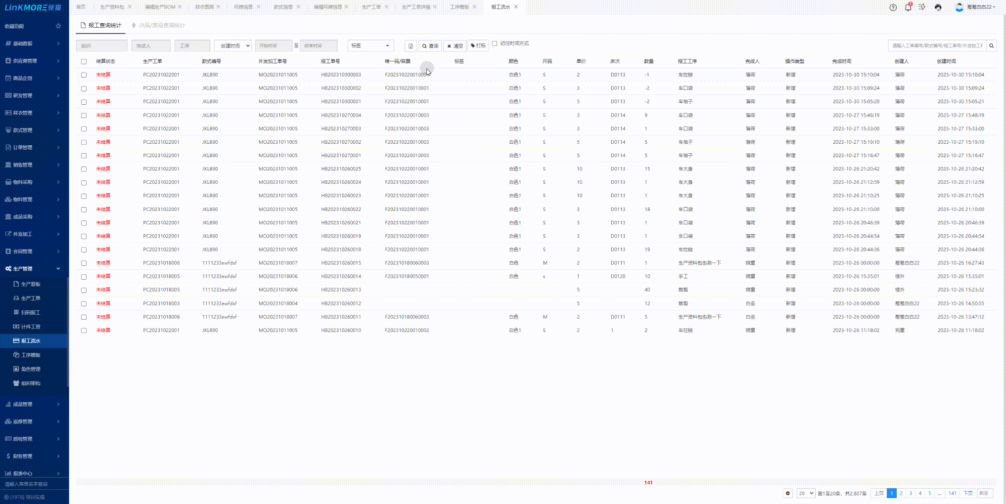 功能说明:工单报工流水,“完成时间”字段日期格式需要体现时分秒