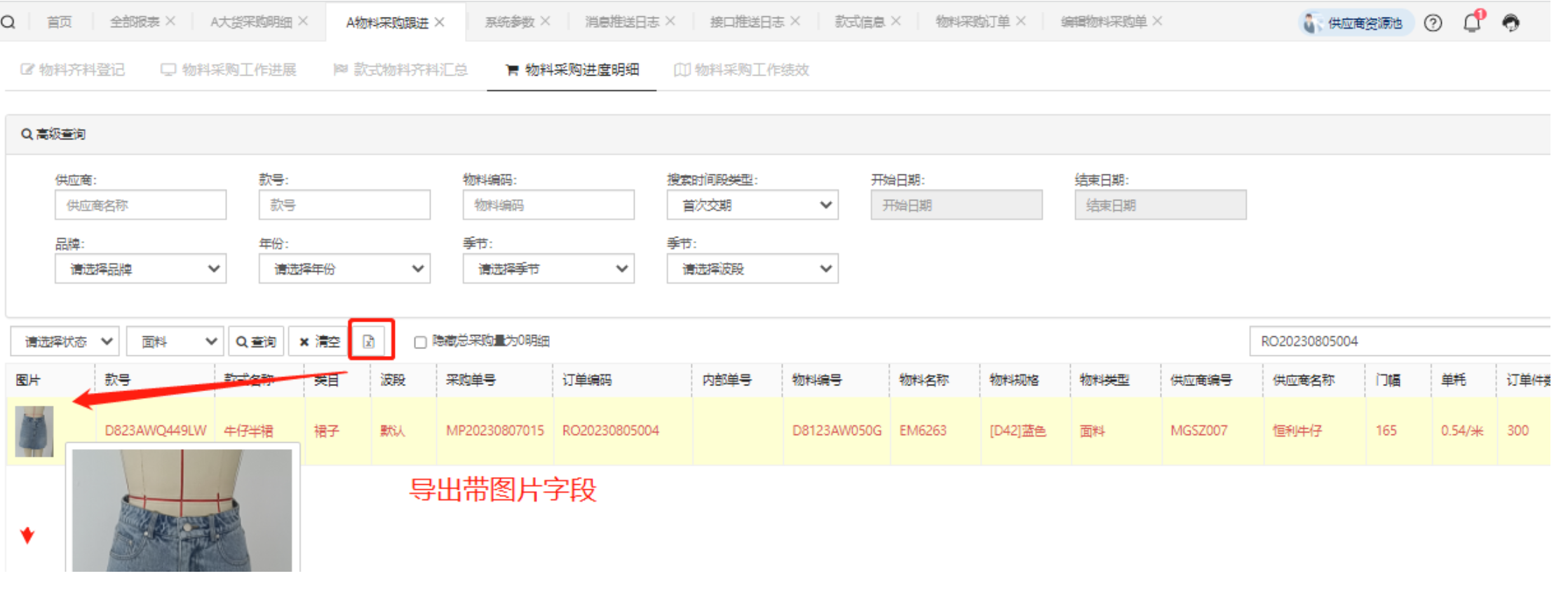 功能路径:路径:全部报表-A物料采购跟进-物料采购进度明细