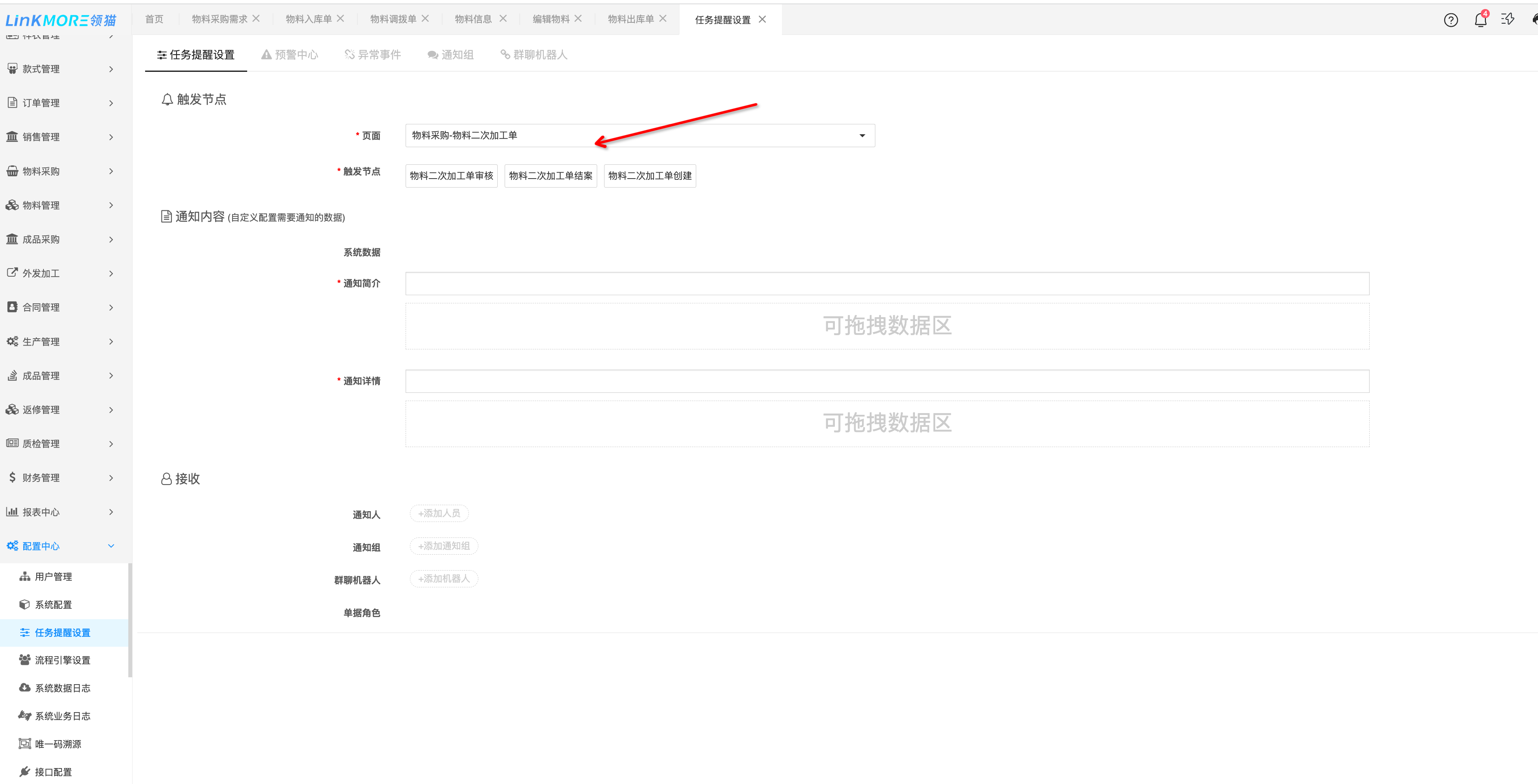 功能说明:增加任务提醒,支持保存、审核和结案时做消息通知