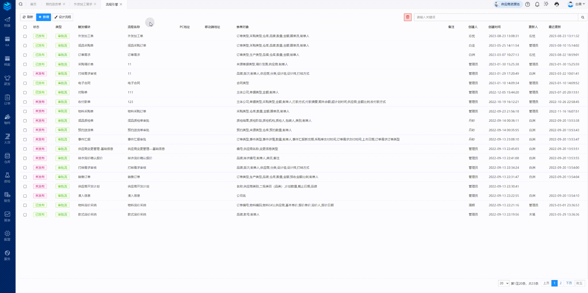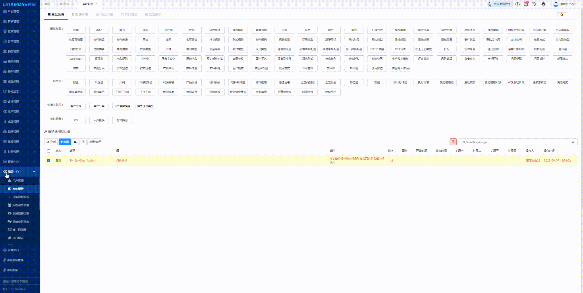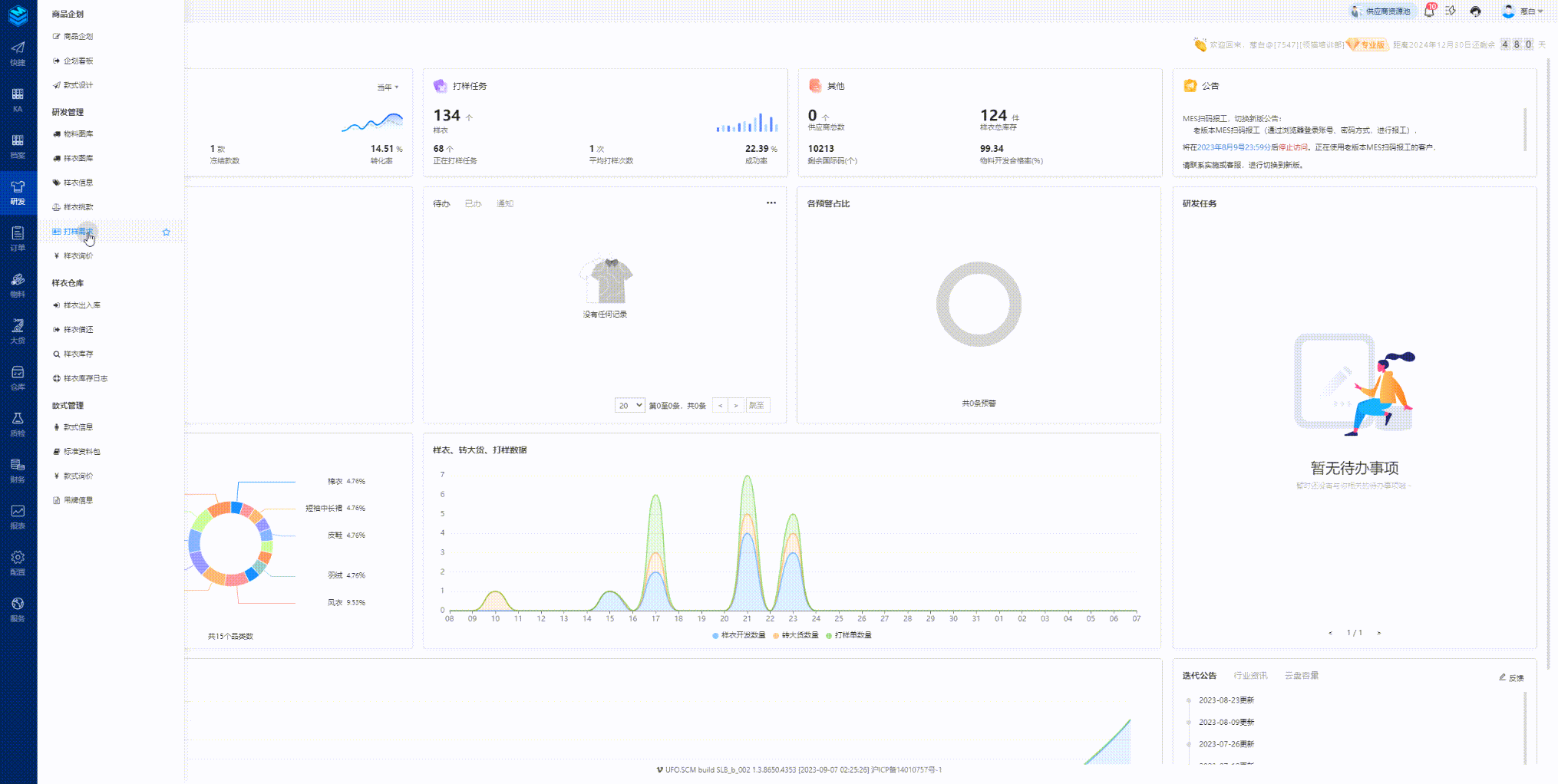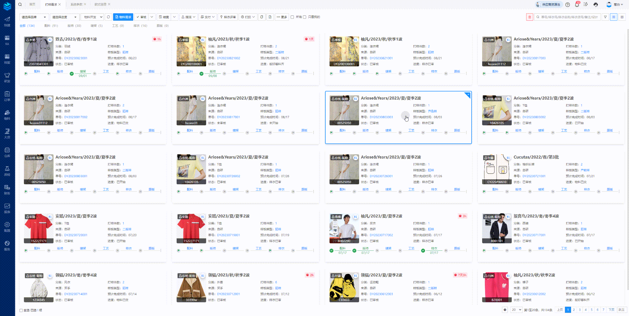 功能路径:研发管理-打样需求