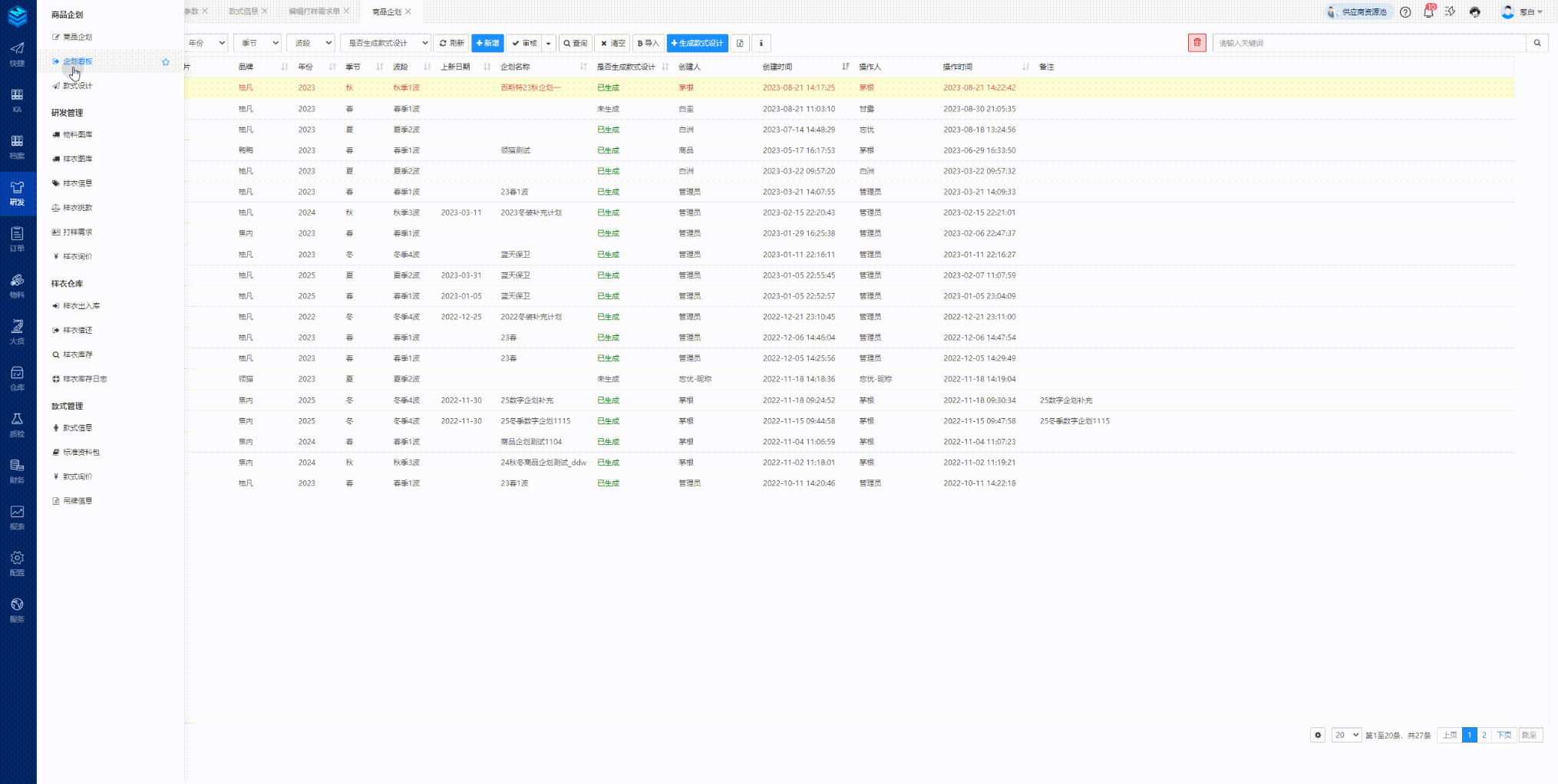 功能路径:企划管理-商品企划