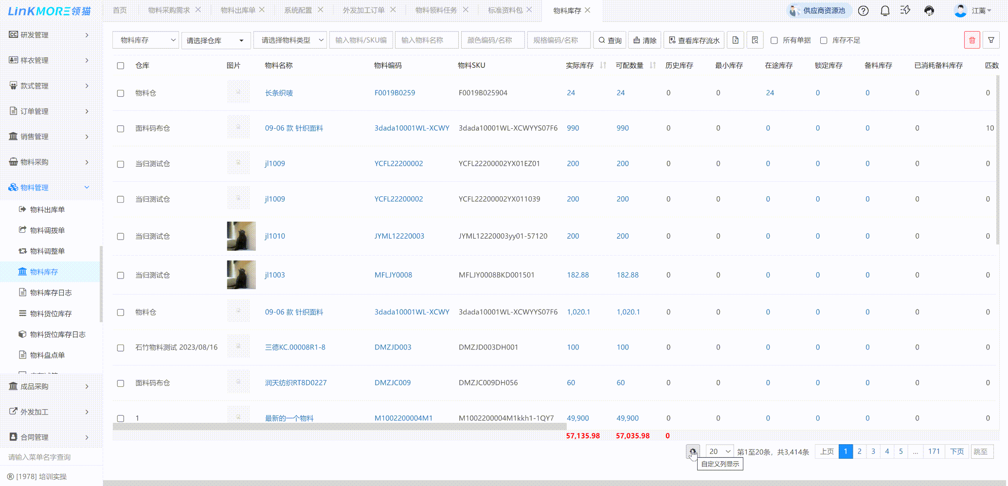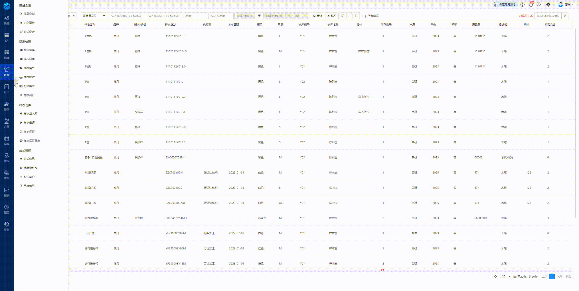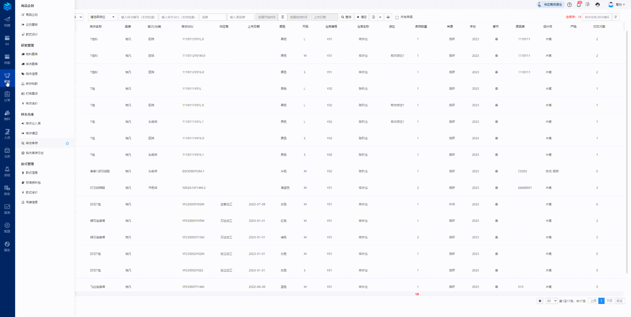 功能路径:样衣管理-样衣库存