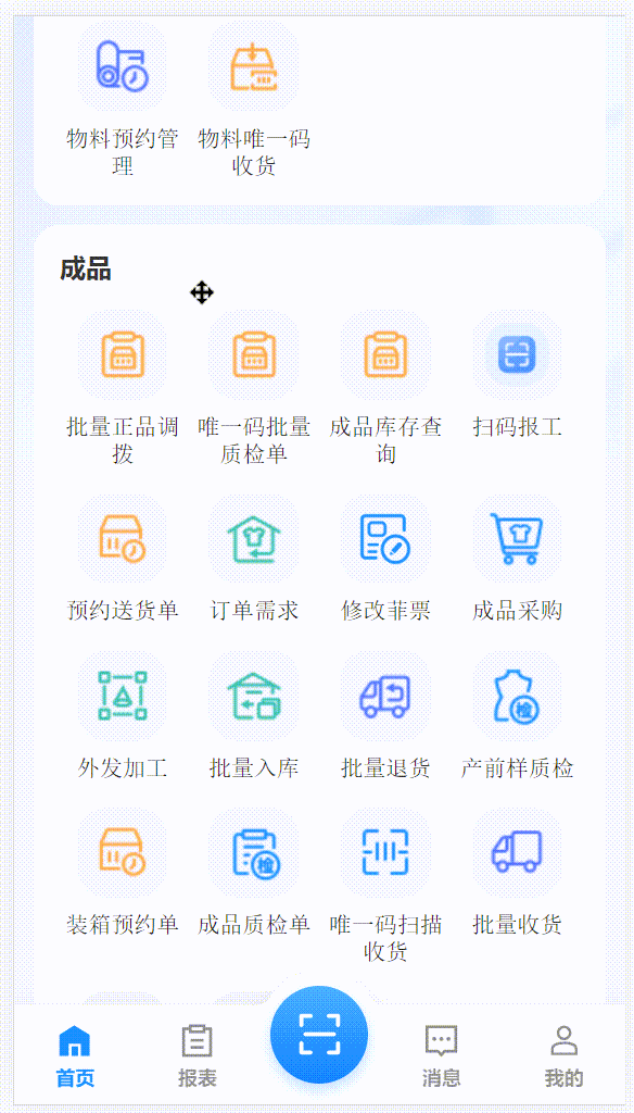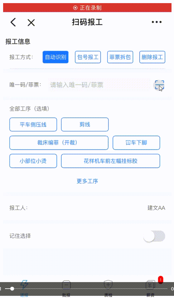 功能路径:移动端-扫码报工