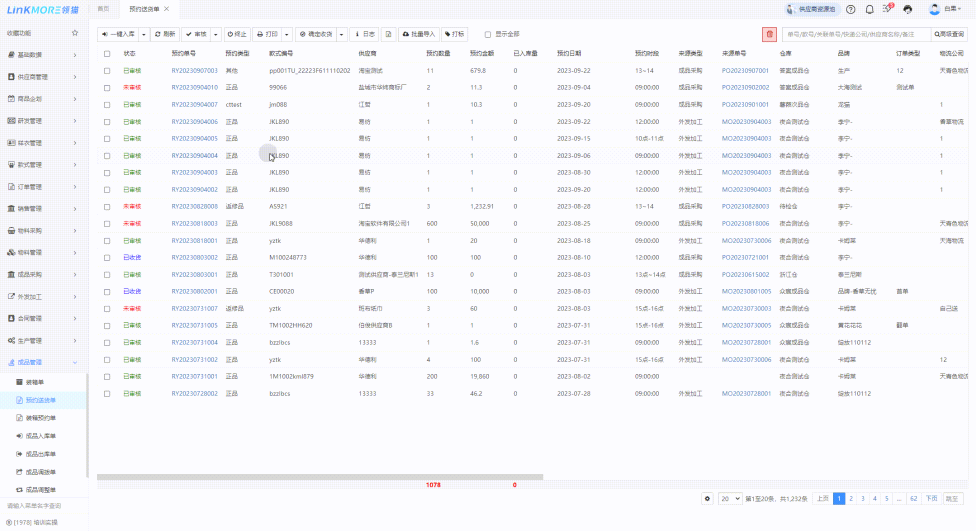 功能路径:成品管理-预约送货单