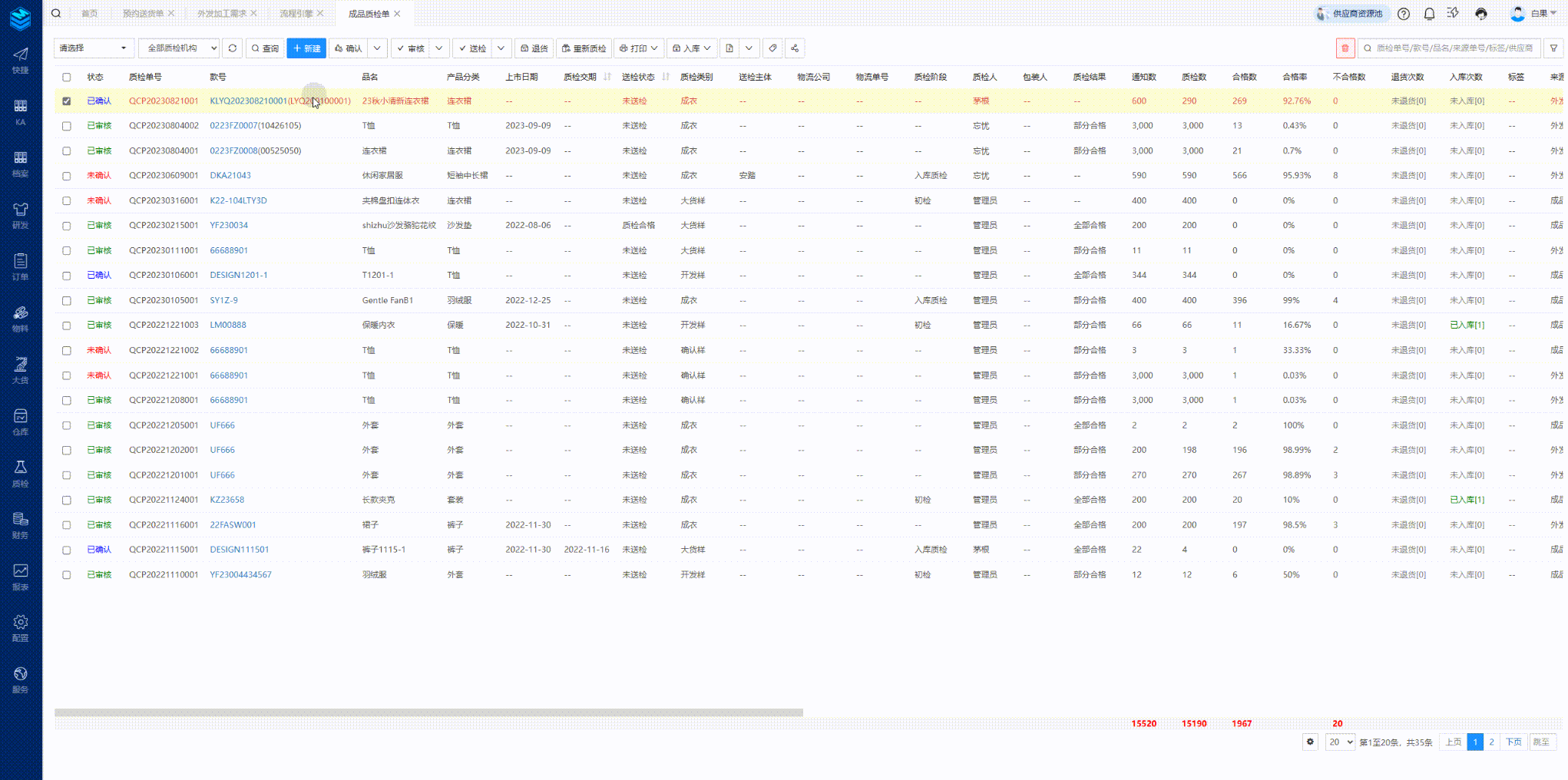 功能路径:质检管理-成品质检单