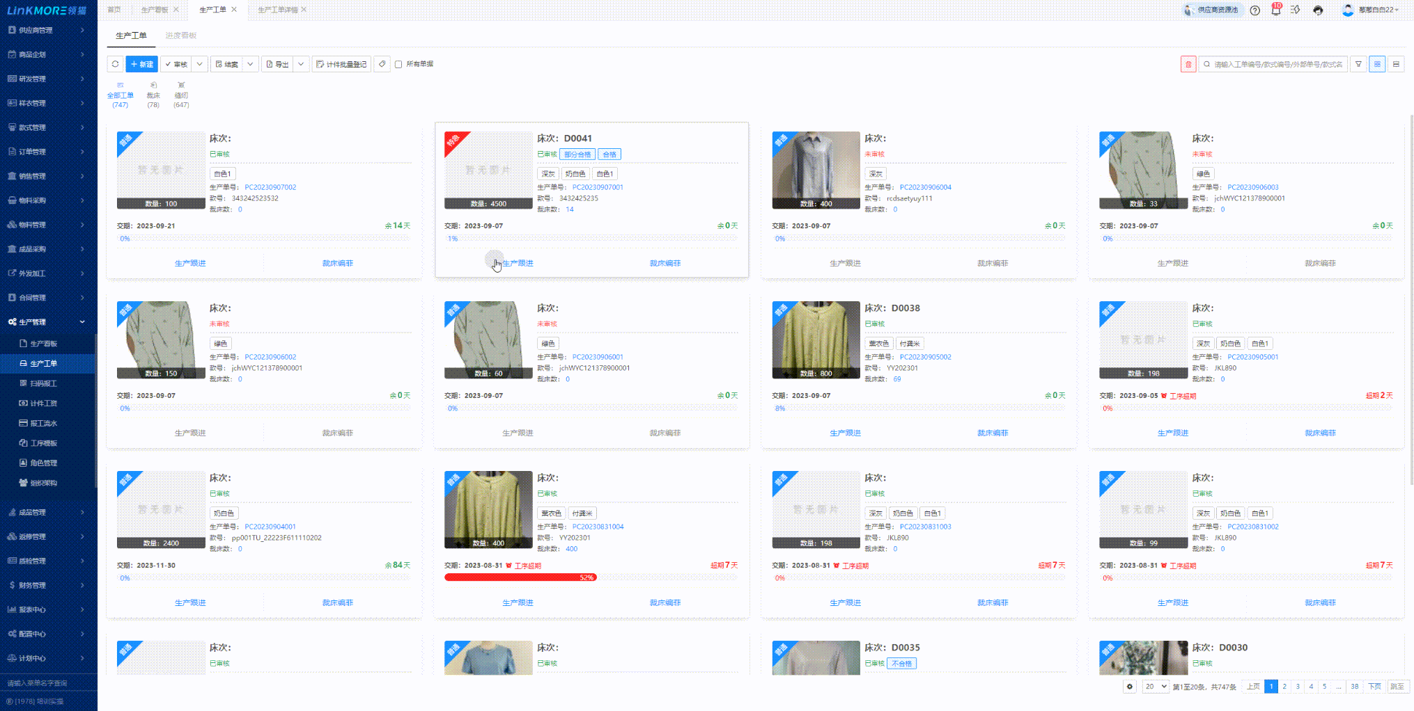 功能路径:生产工单-裁床编菲