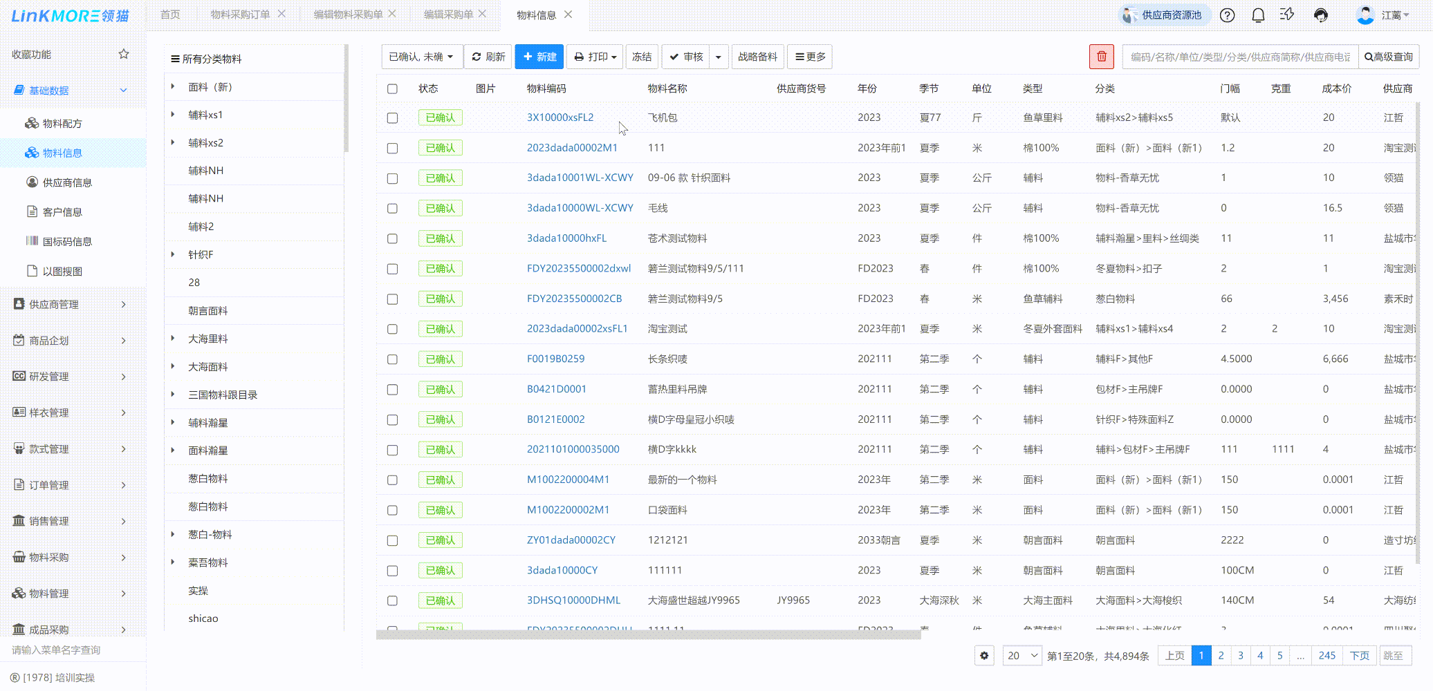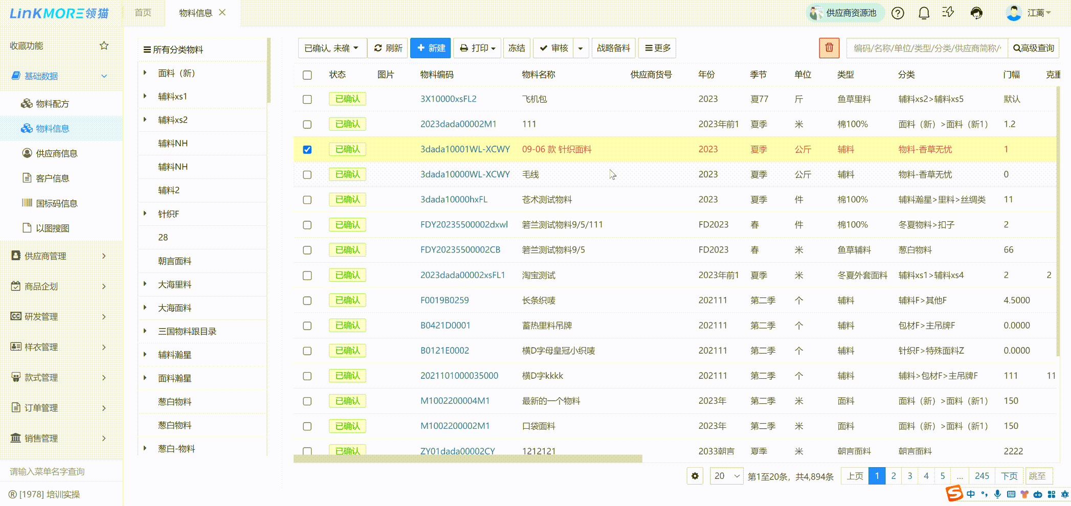 功能路径:款式管理-标准bom物料用量