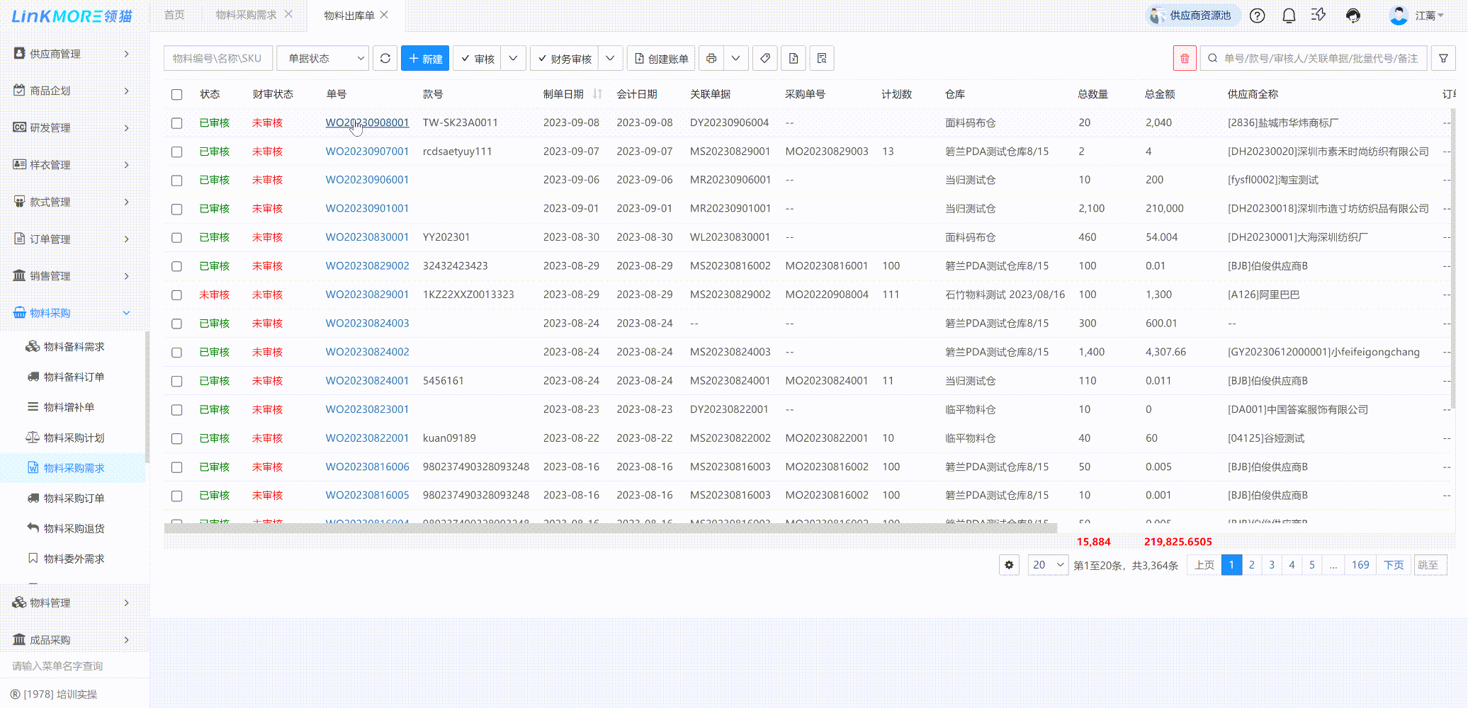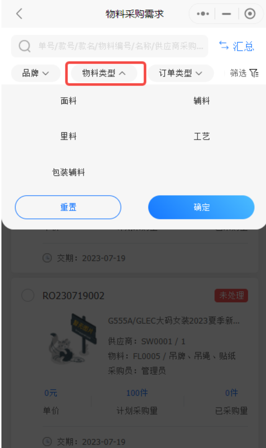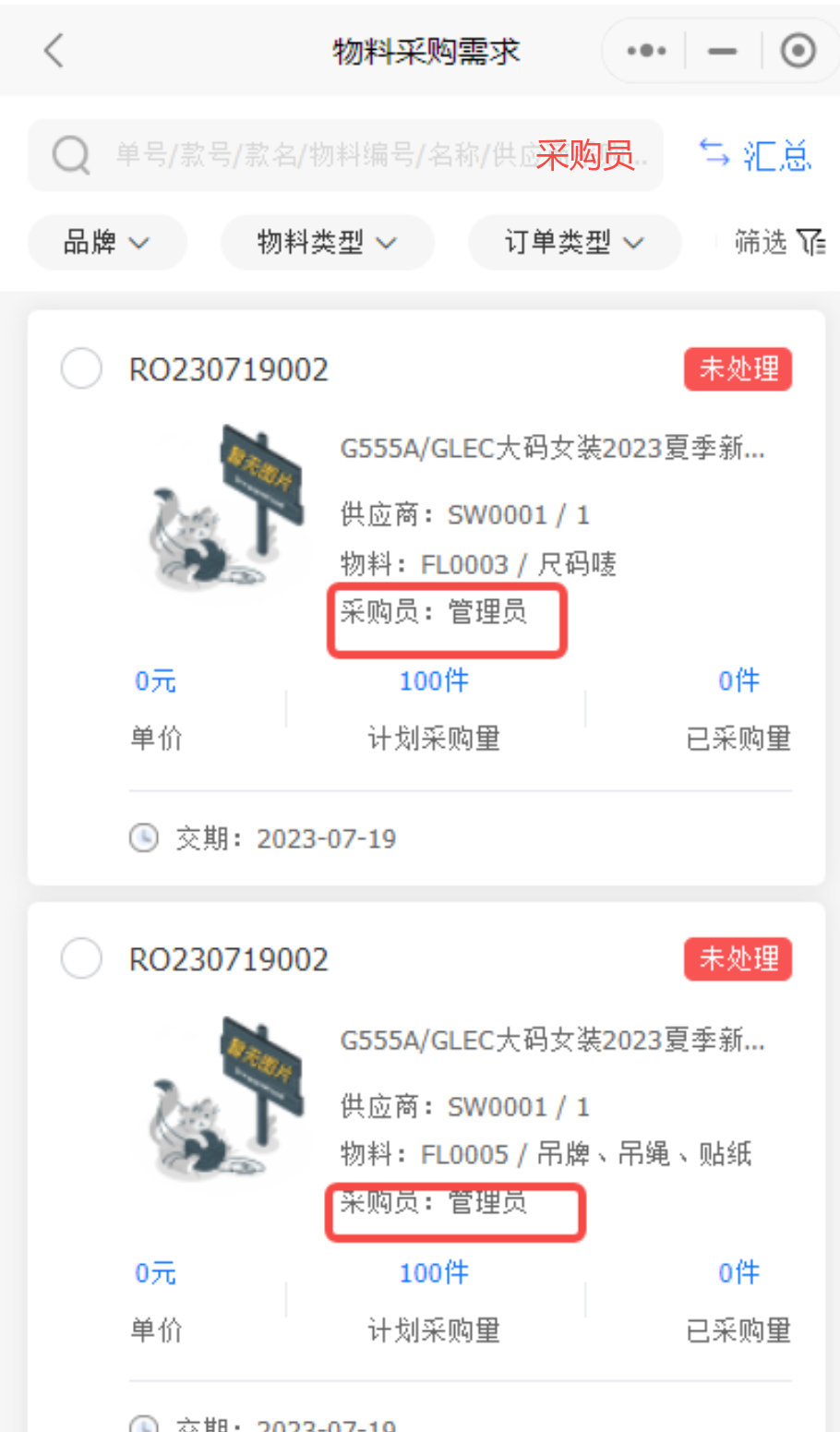功能说明:模糊搜索增加采购员,支持搜索某个采购员的物料采购需求
