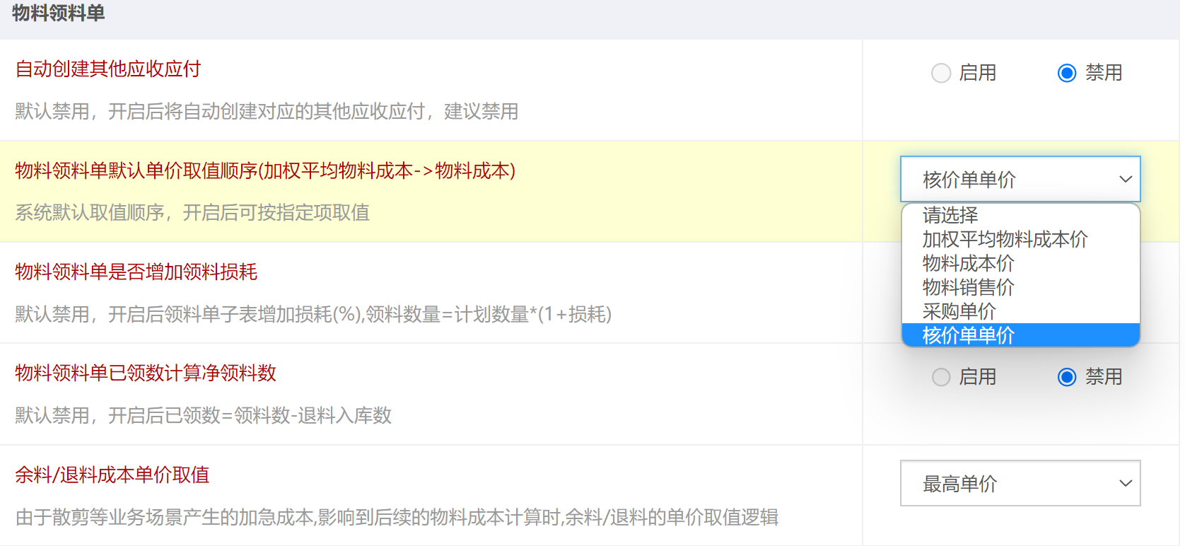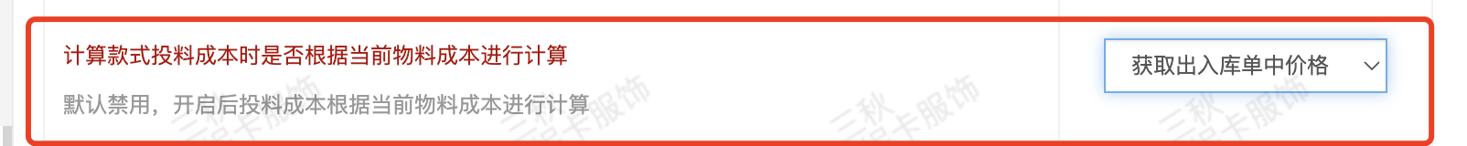 功能说明:在取BOM的时候,面辅料以及各项成本根据配置会区分含税未税。