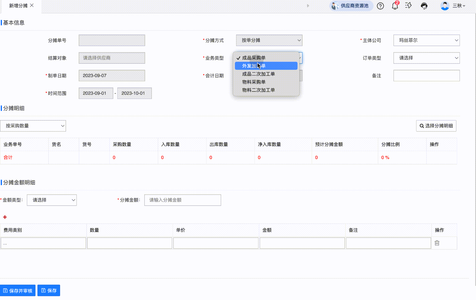 功能路径:采购单-外发加工单/成品采购单