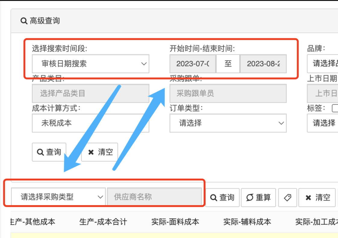 功能说明:高级查询增加“默认供应商货号”,支持按照供应商货号模糊搜索