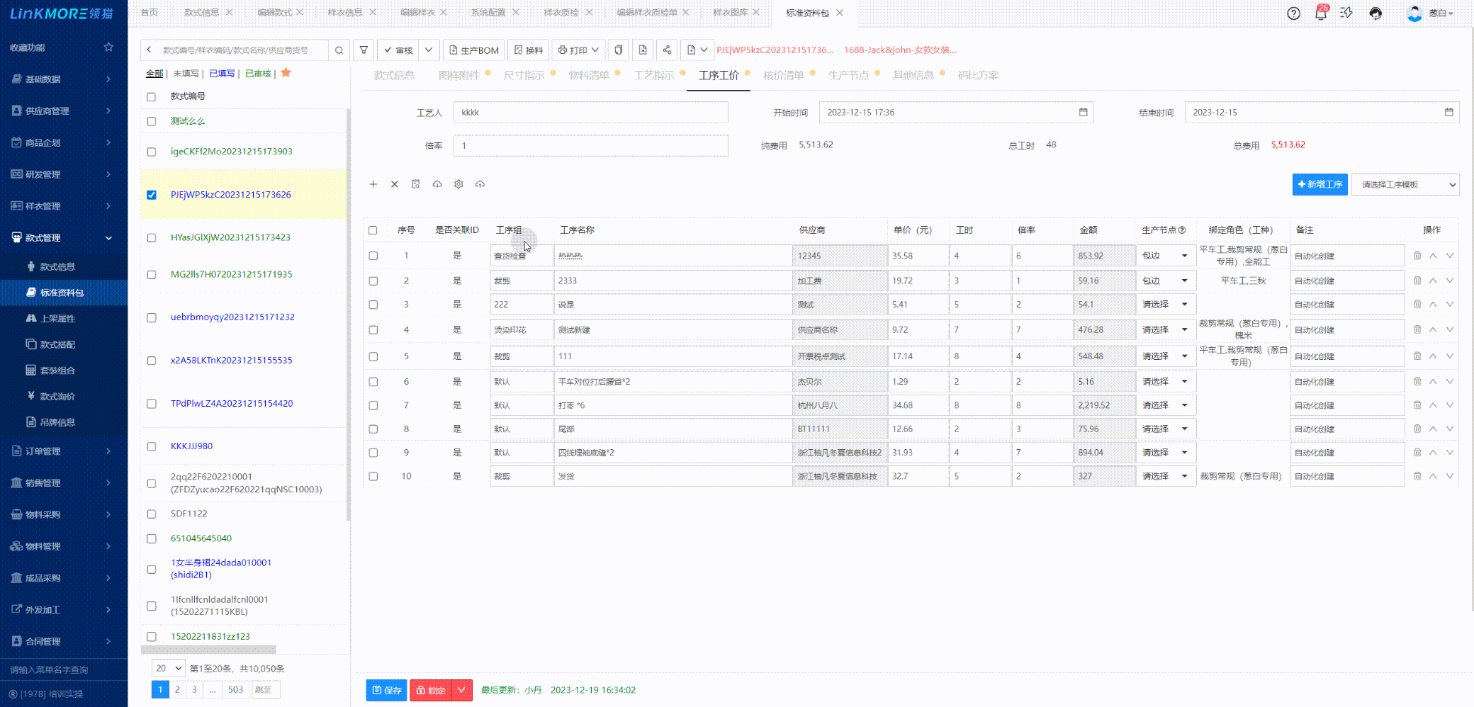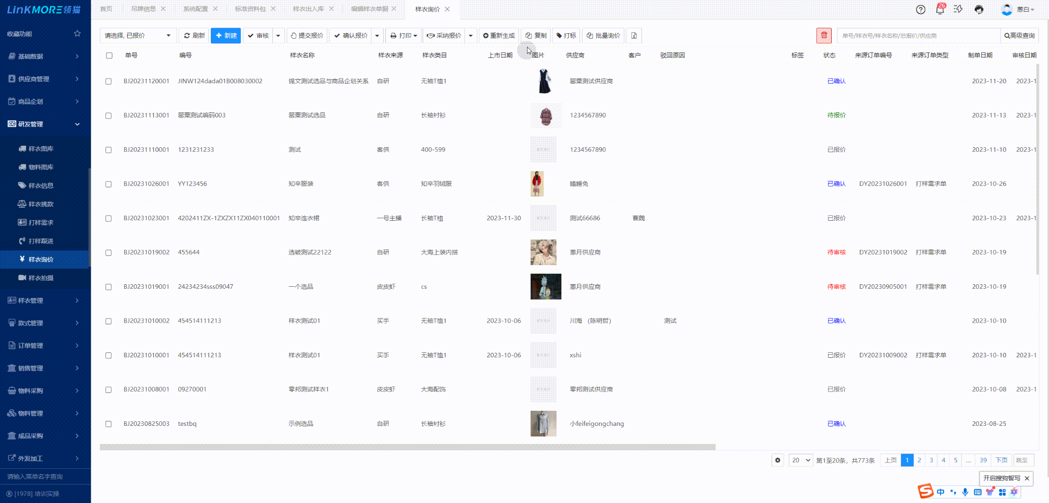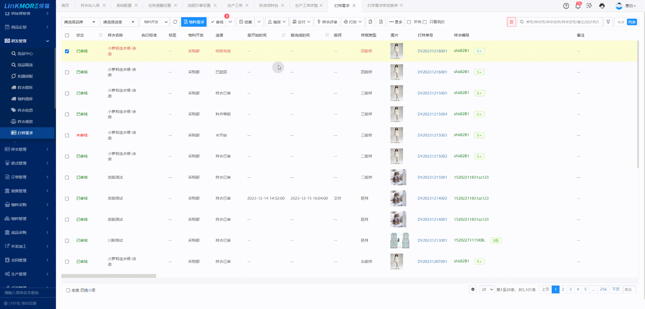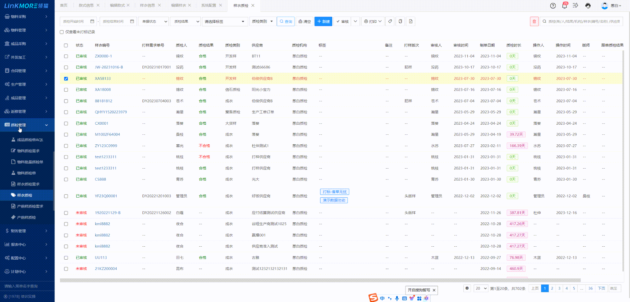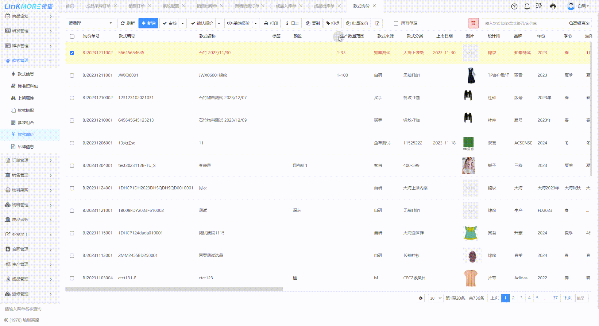 功能说明:样衣信息转大货,将样衣的打标,带入到款式信息标签