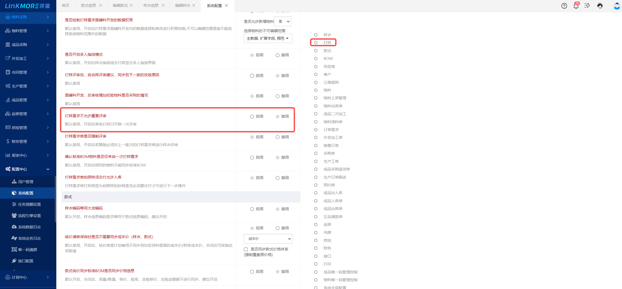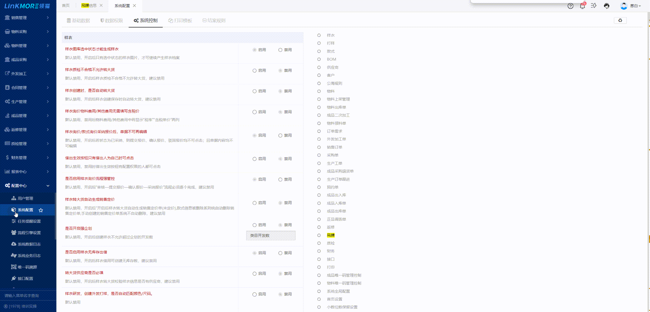 功能说明:系统配置,未审核的吊牌信息,不允许打印。