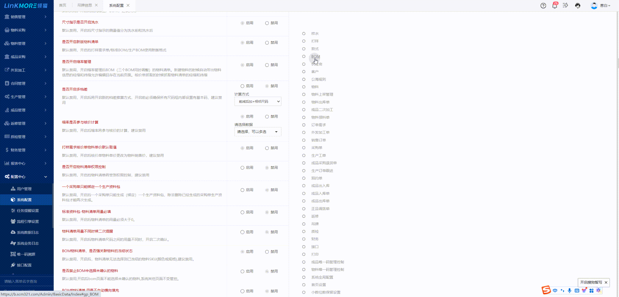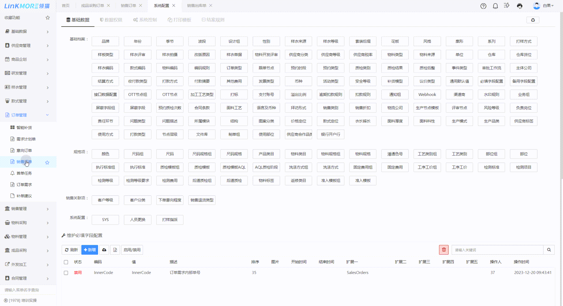 功能说明:增加系统配置项,增加必填字段配置 内部单号,结算方式