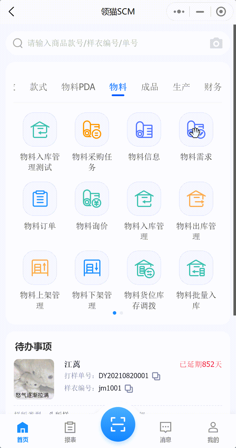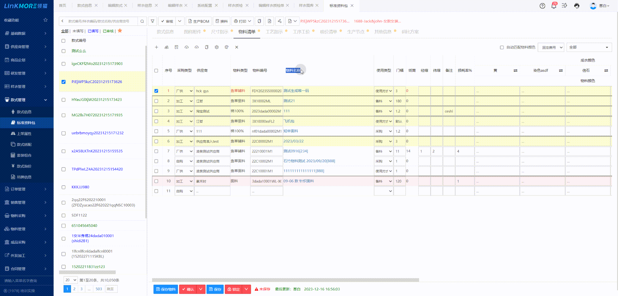 功能说明:面辅料开发界面,新增物料,必填项需要和物料信息保持一致