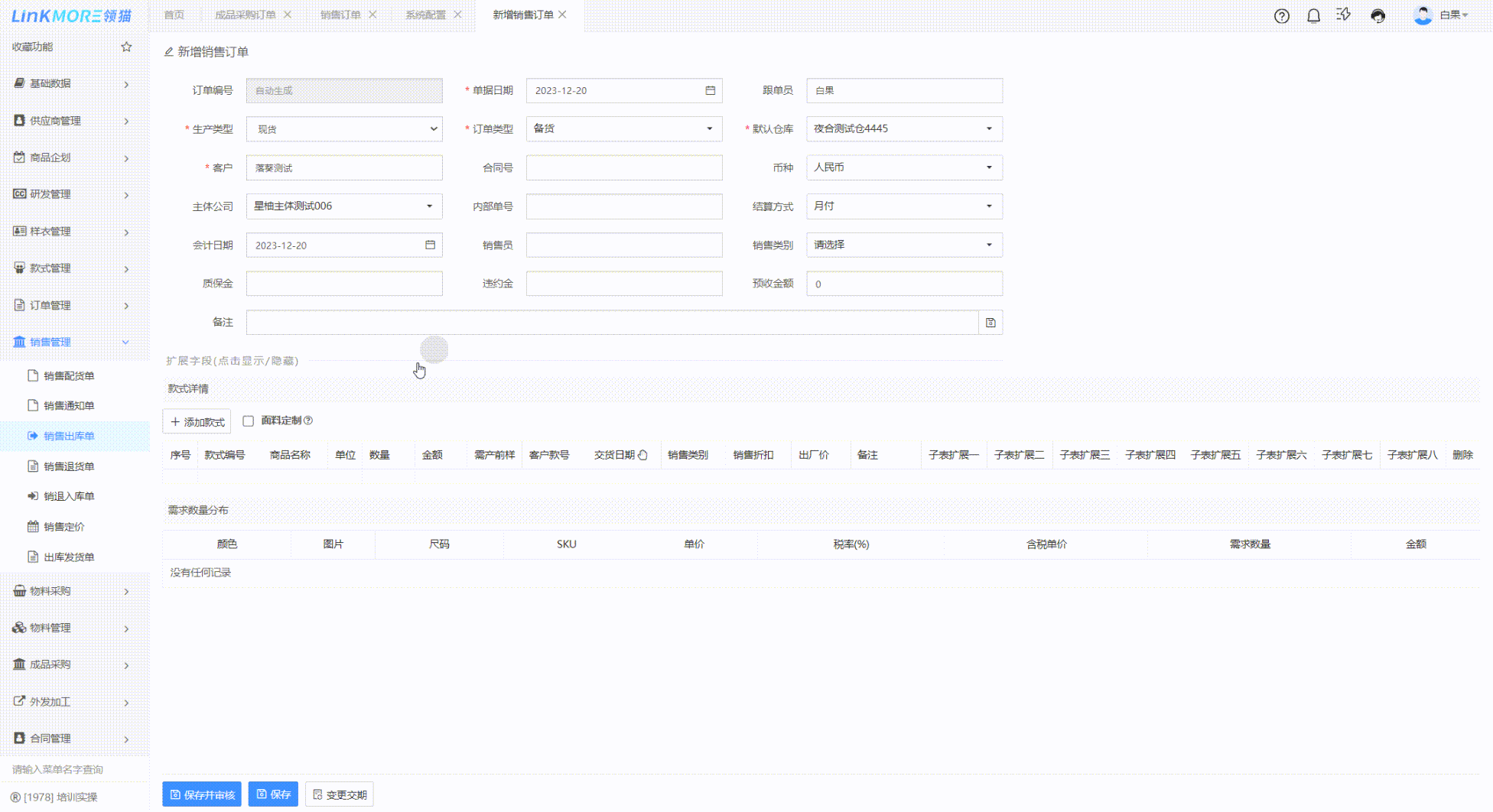 功能说明:增加系统配置项,销售订单生产类型为现货,审核时自动创建对应的销售出库单