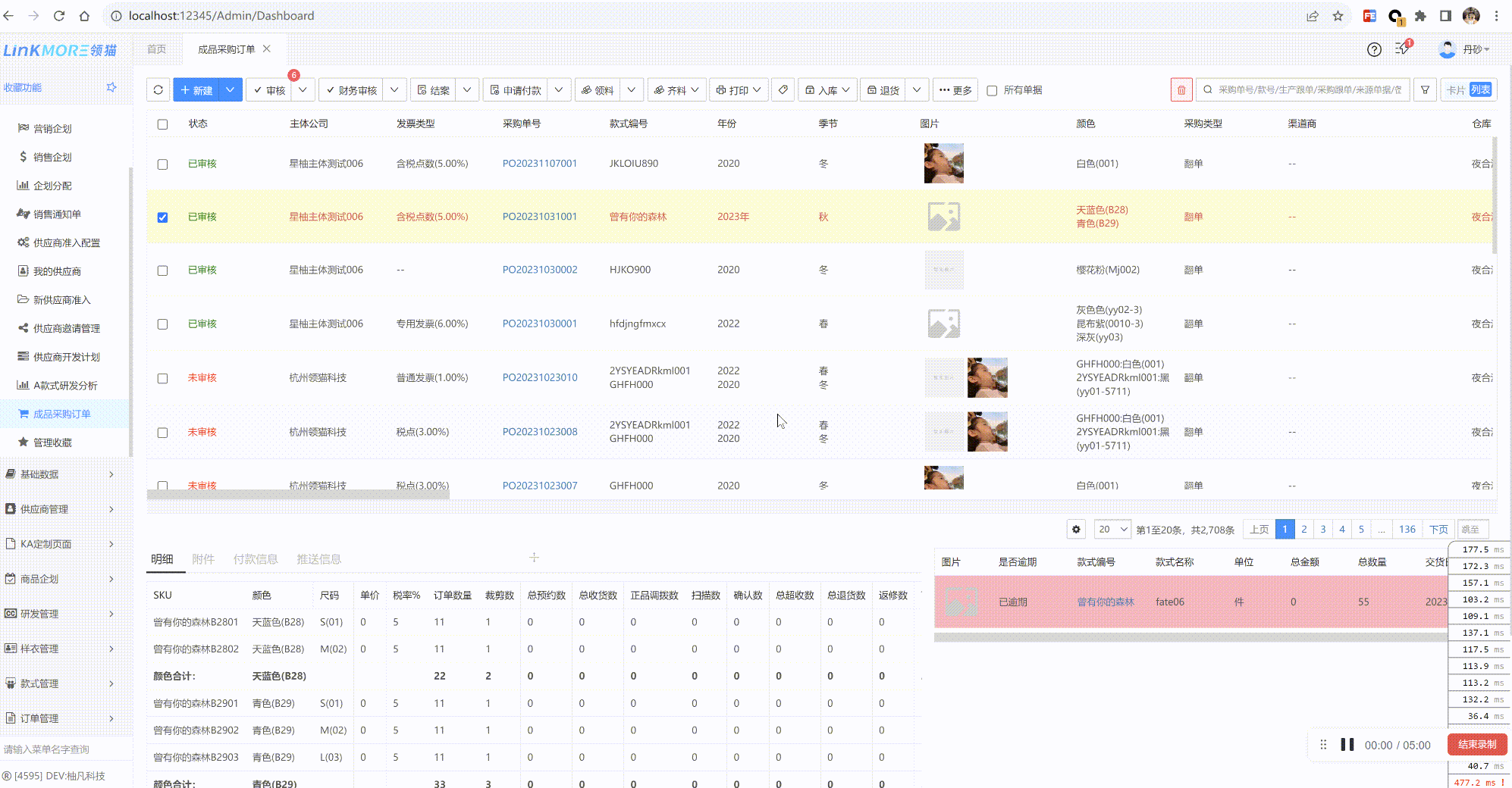 功能说明:物料采购需求页面优化,支持单个/批量生成采购订单