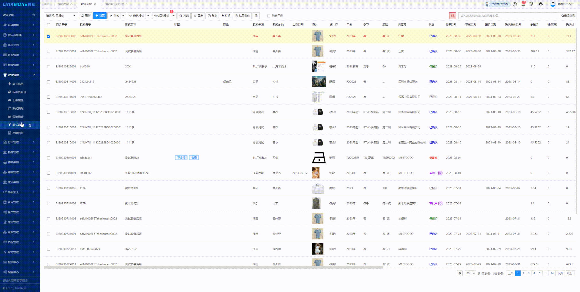 功能路径:款式管理-款式询价