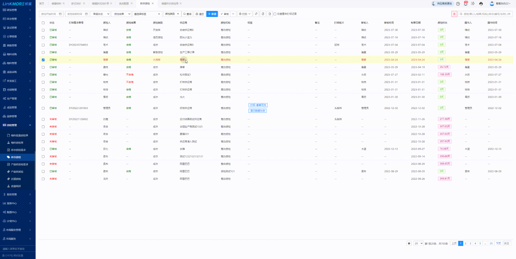 功能路径:质检管理-样衣质检