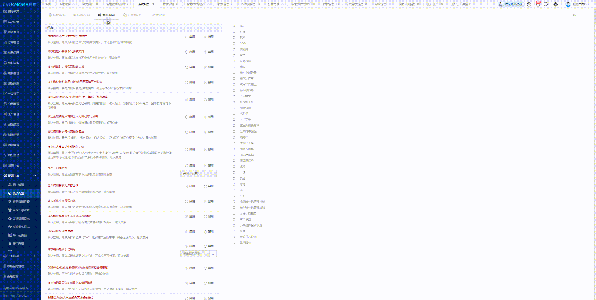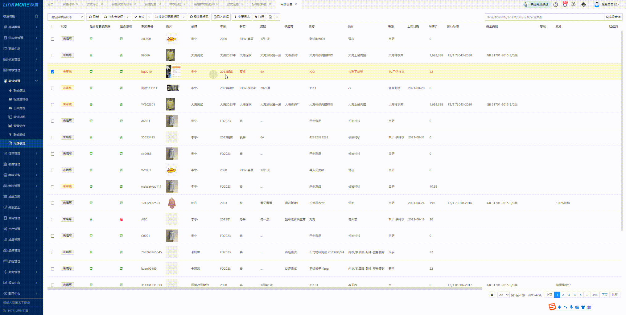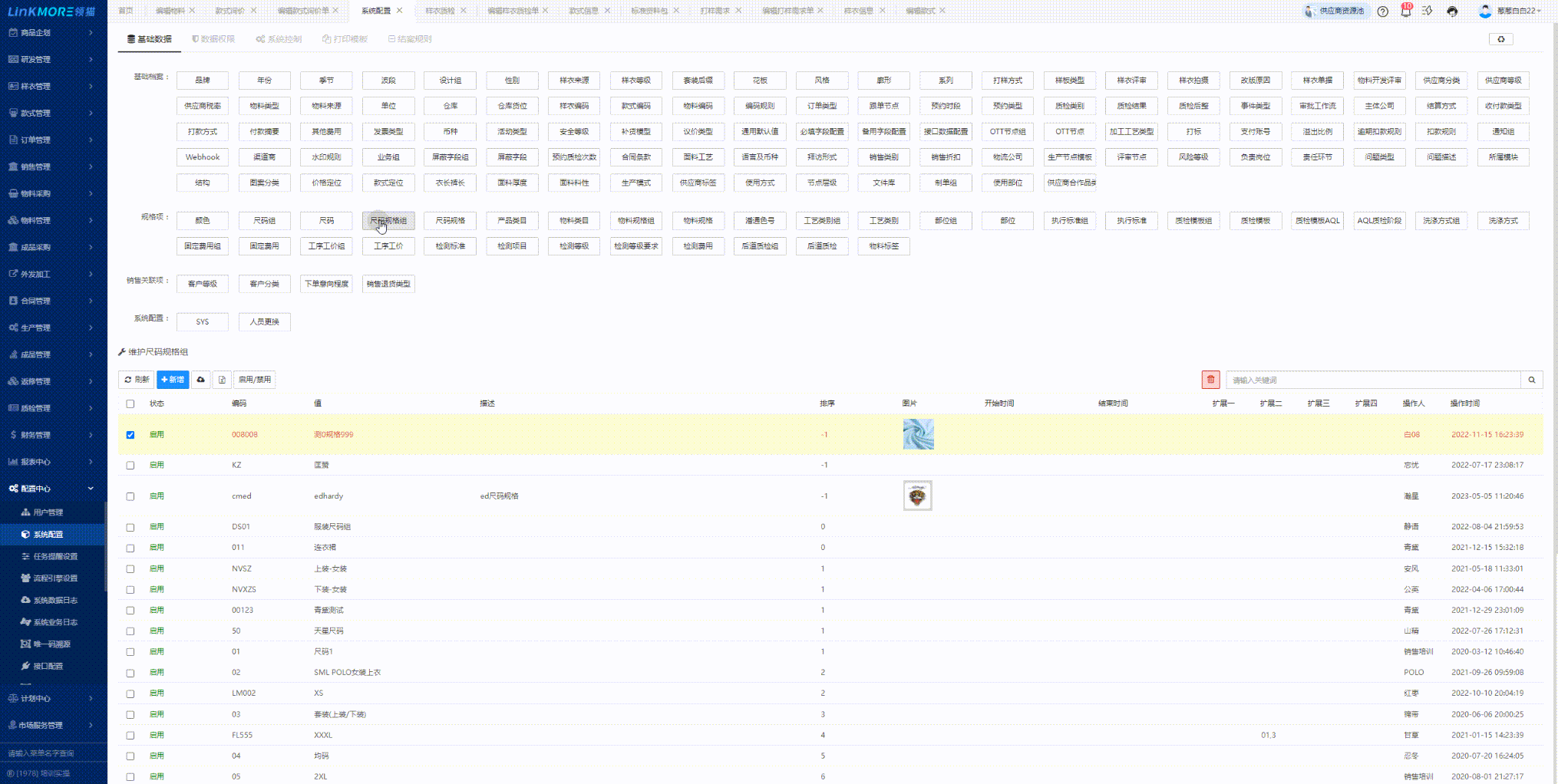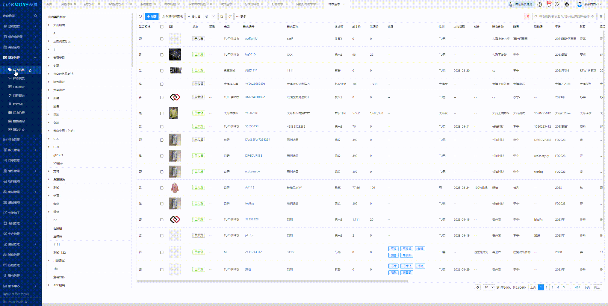 功能路径:研发管理-样衣信息