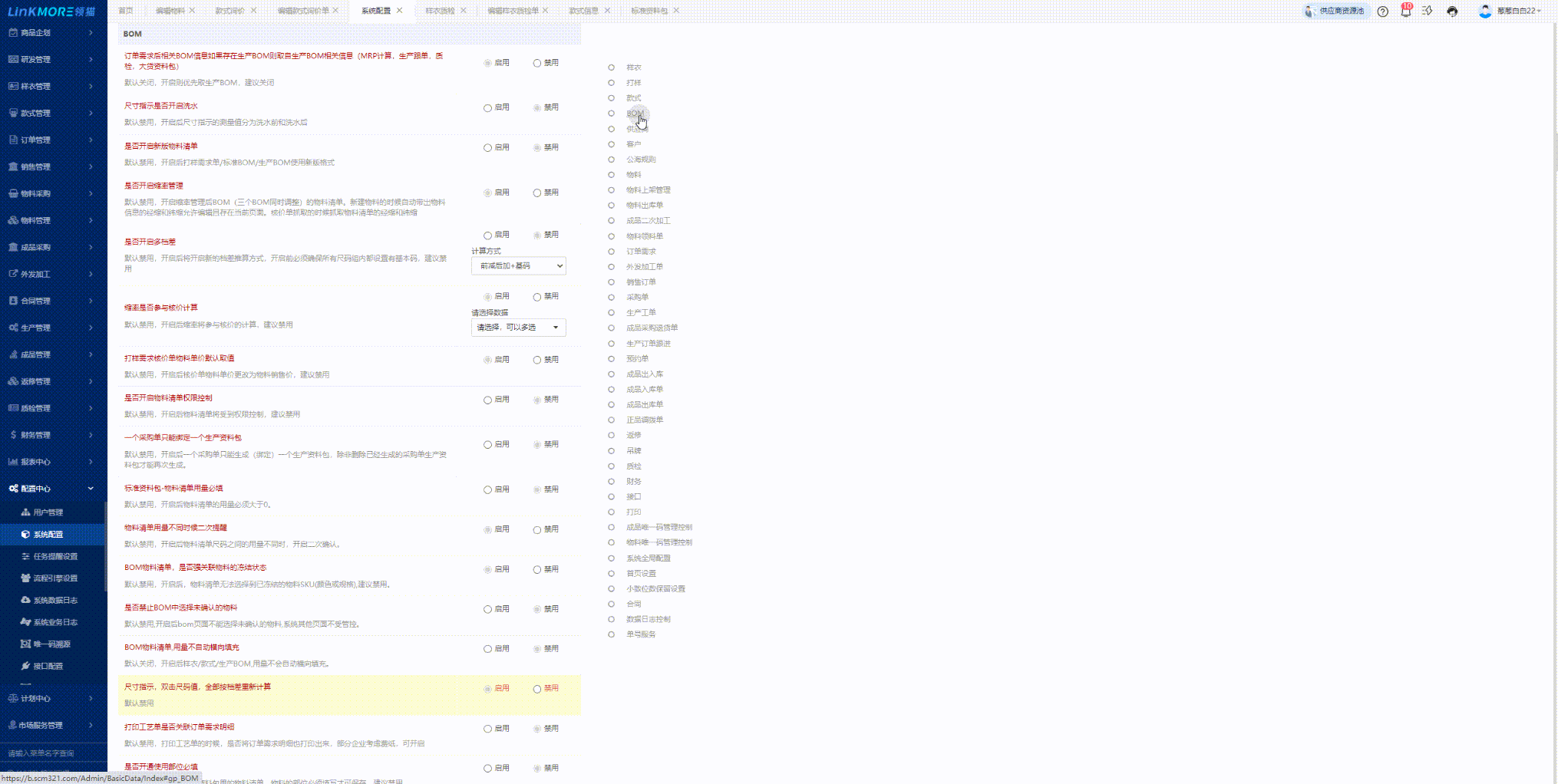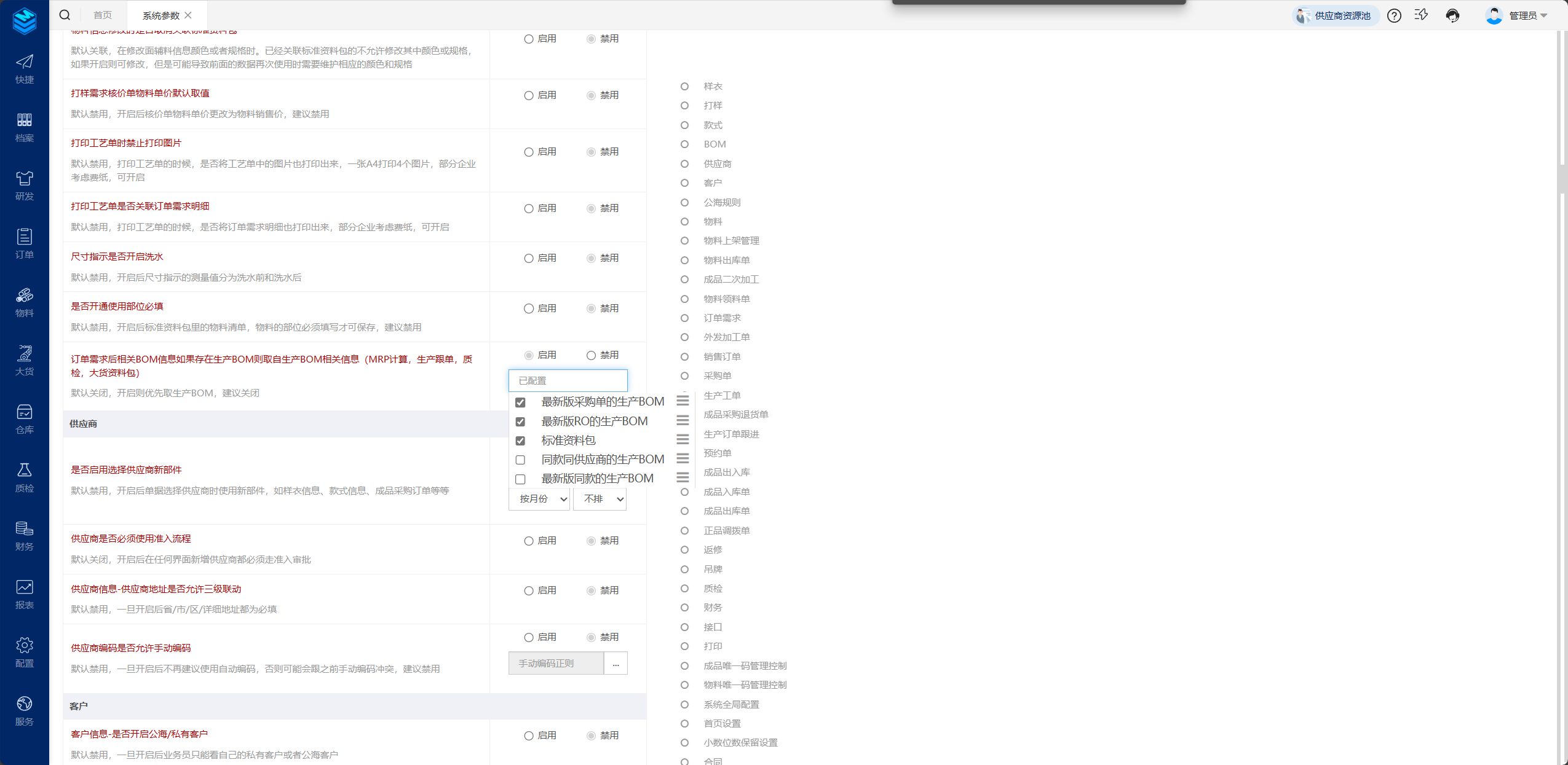 功能说明:开启生产BOM,可以配置BOM取值逻辑顺序取值优化