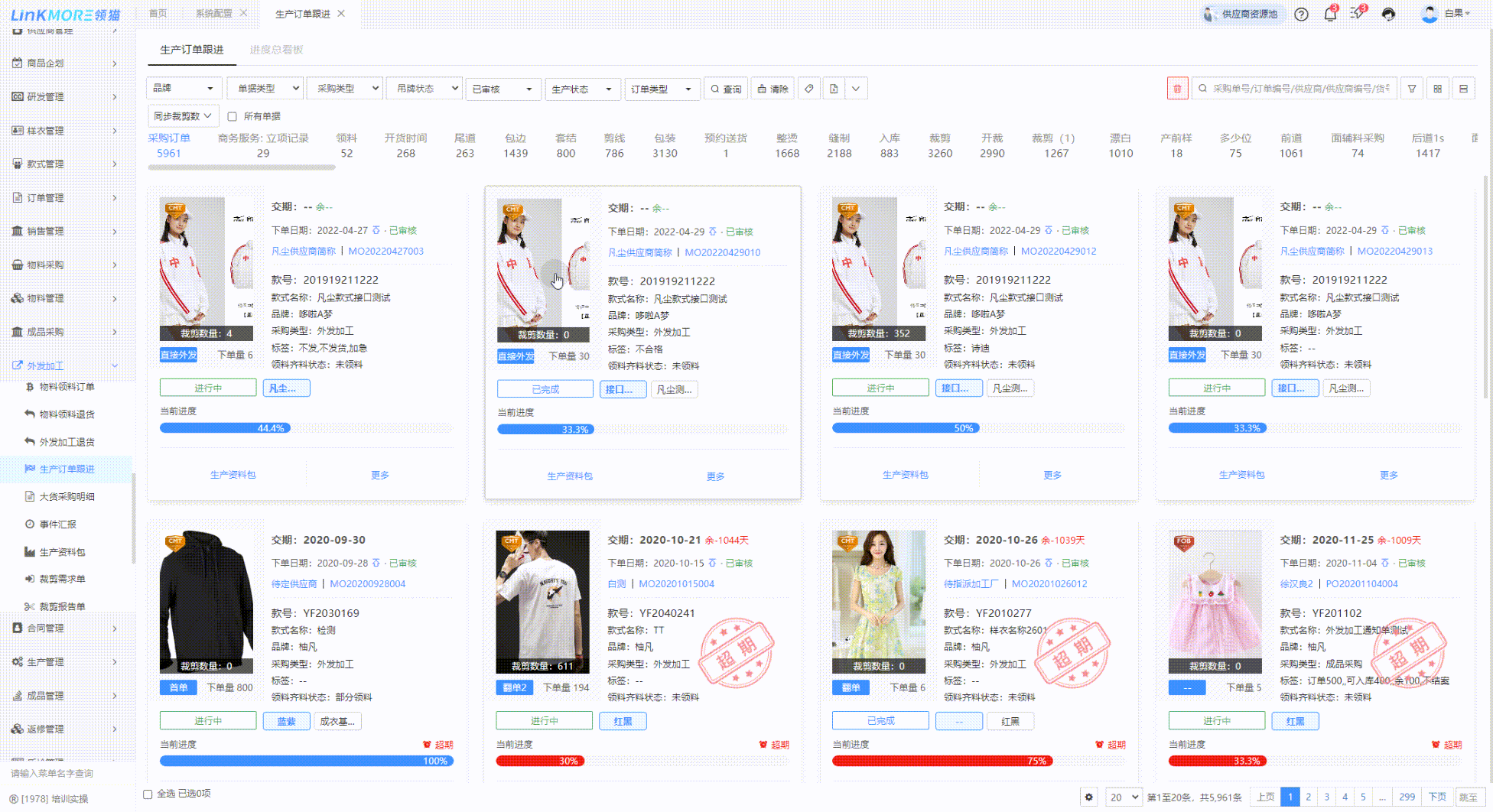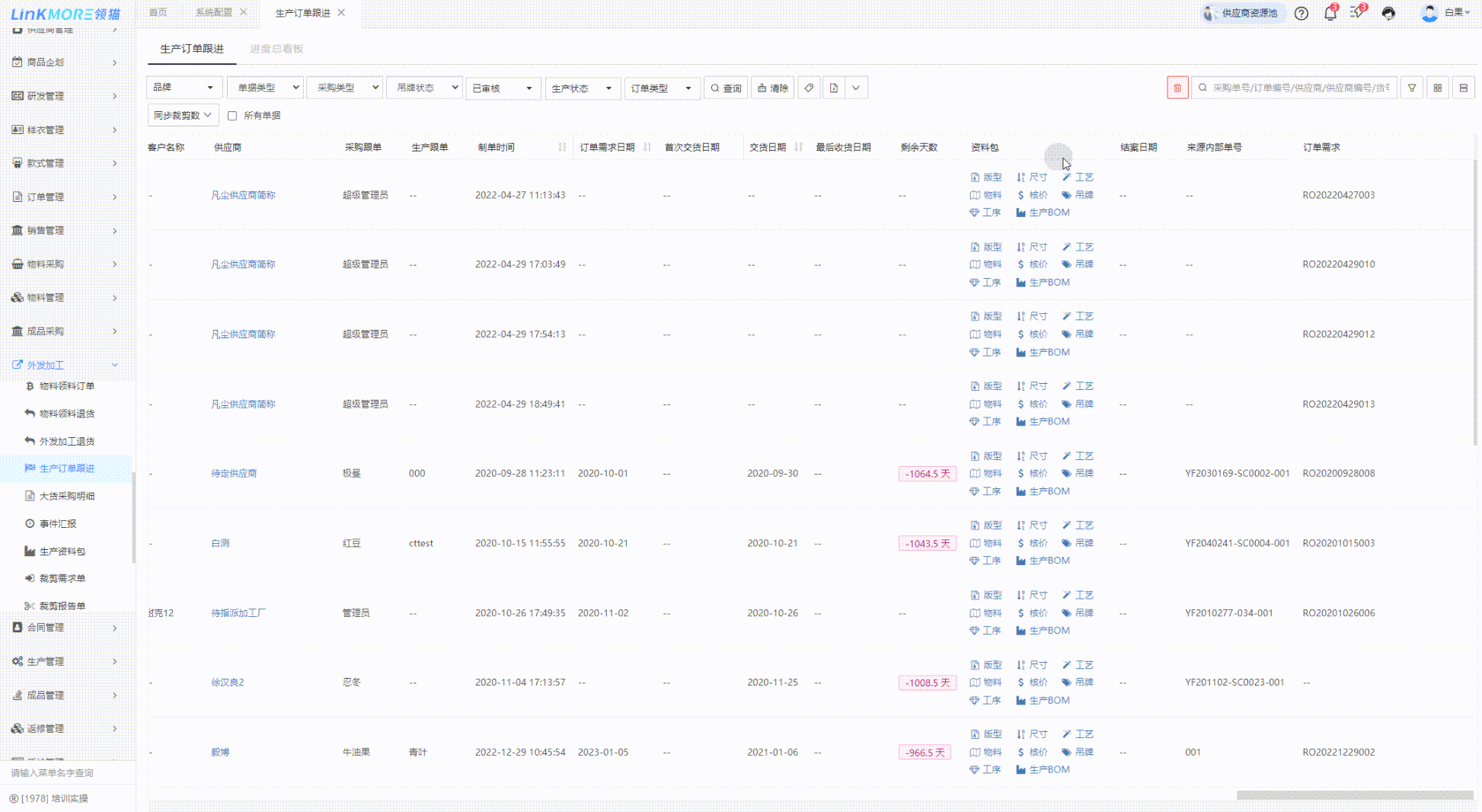 功能路径:采购单-生产订单跟进/进度总看板