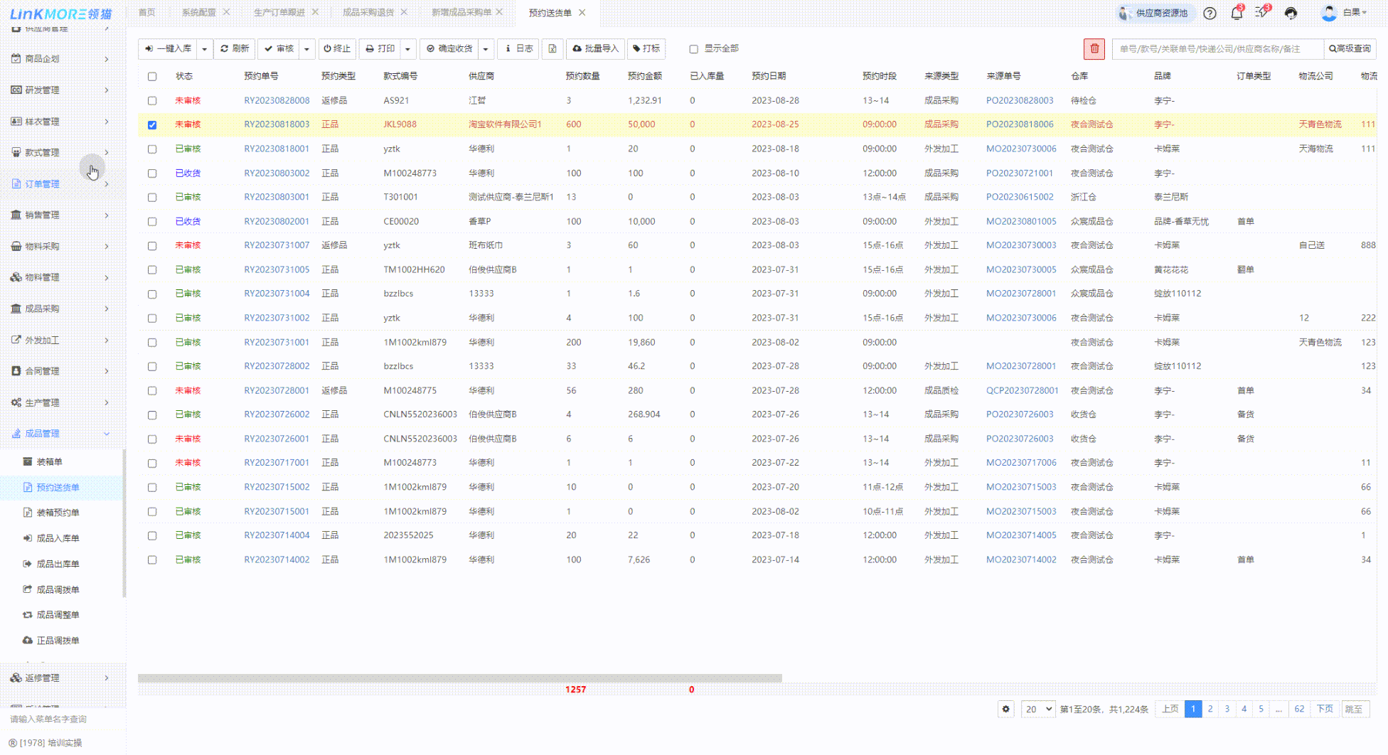 功能路径:成品管理-预约送货单