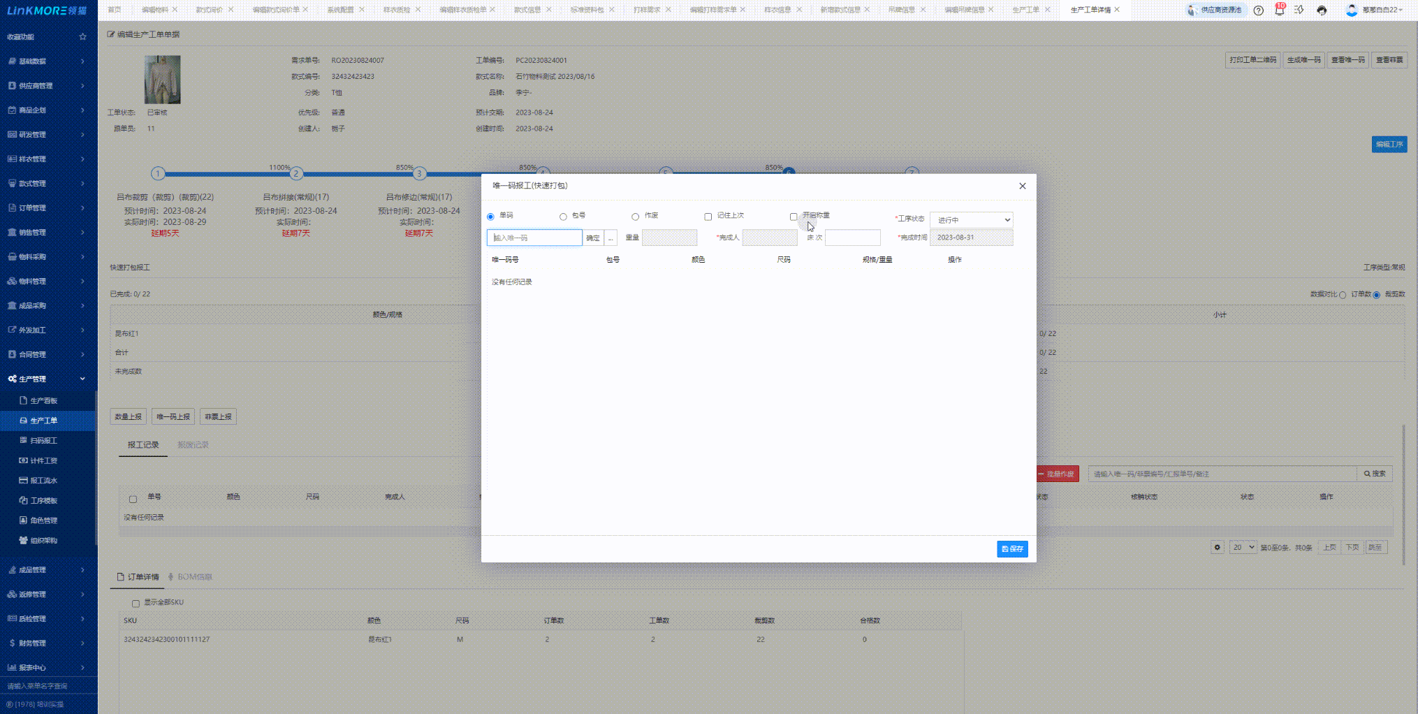 功能路径:生产工单-生产跟进