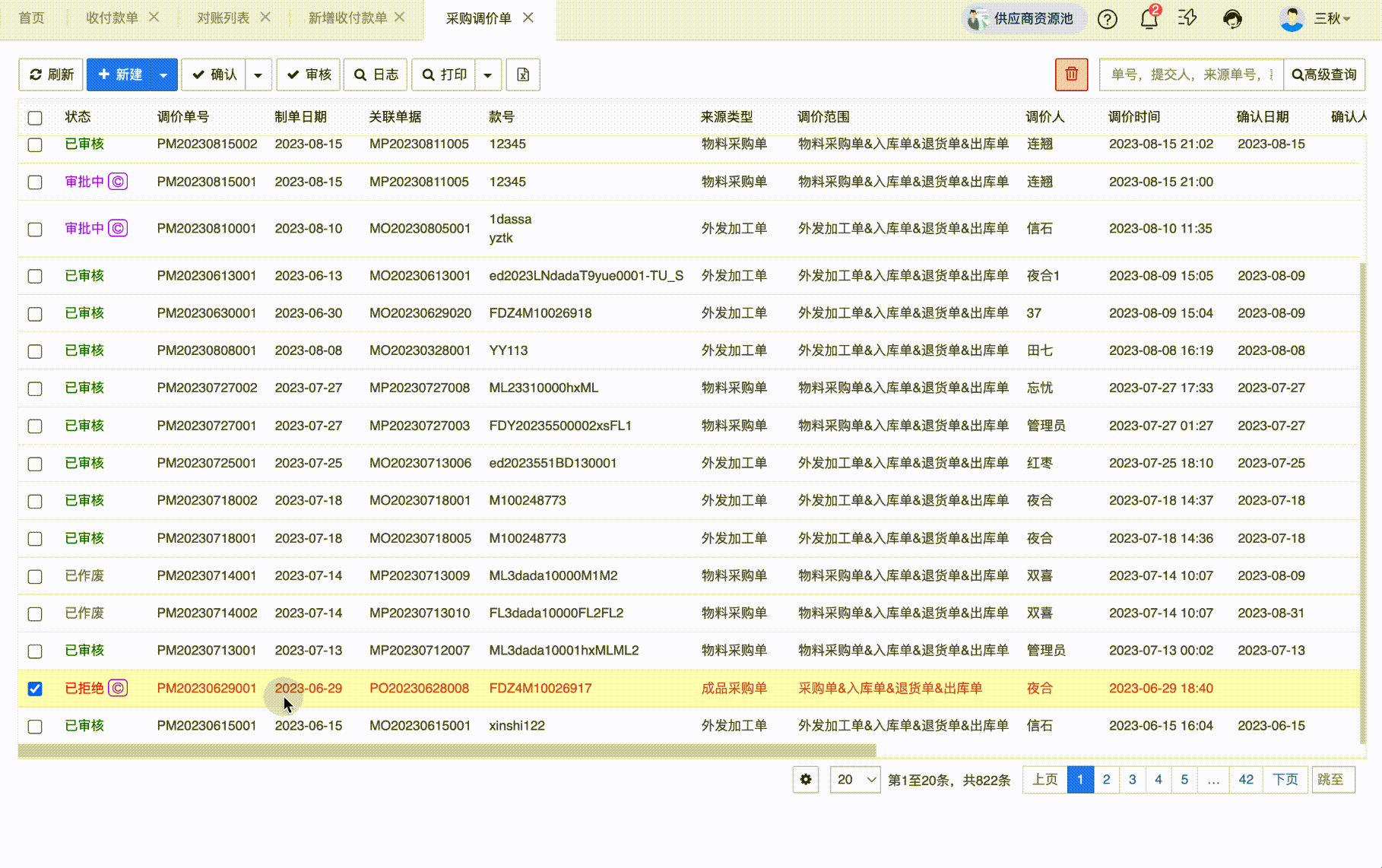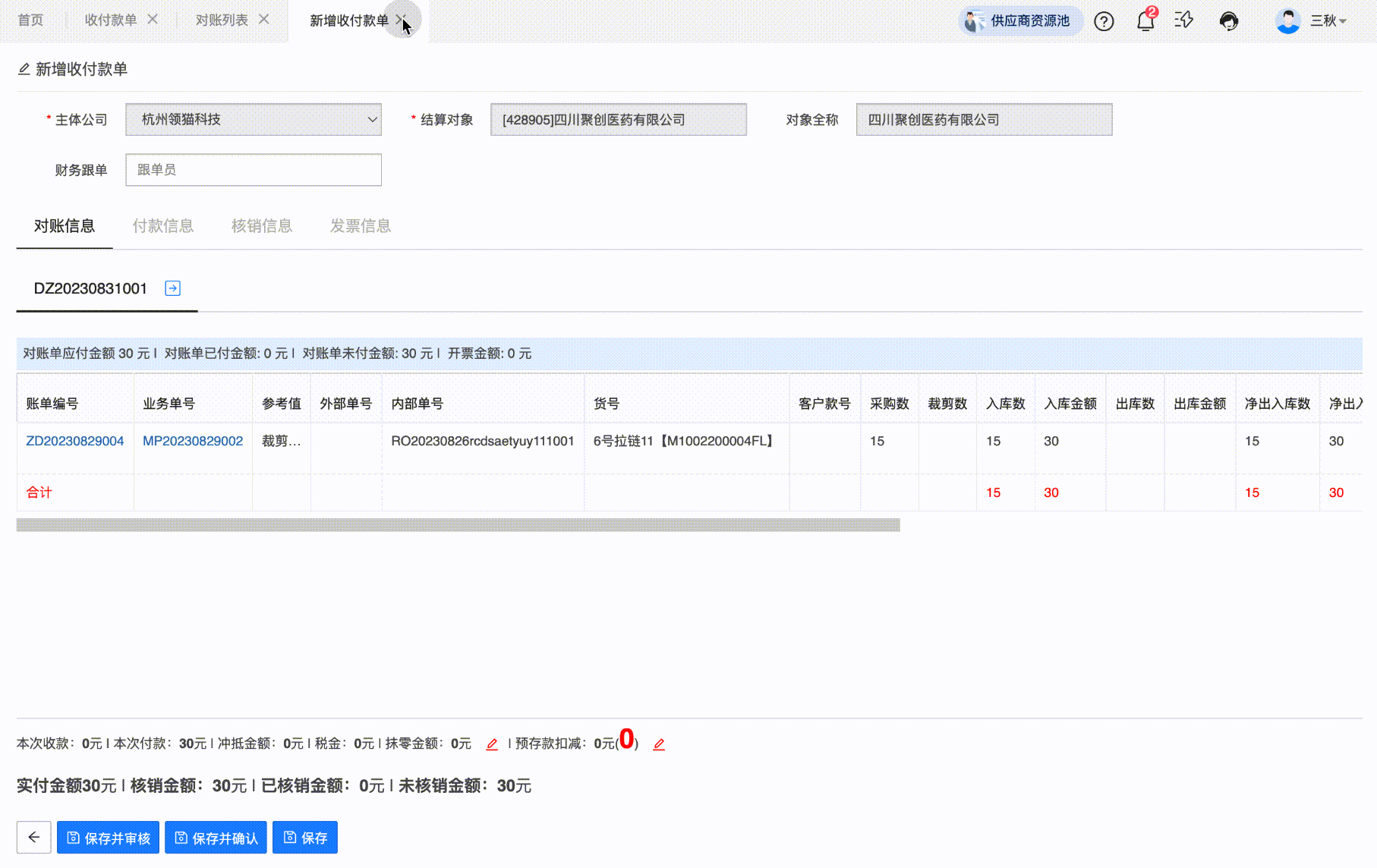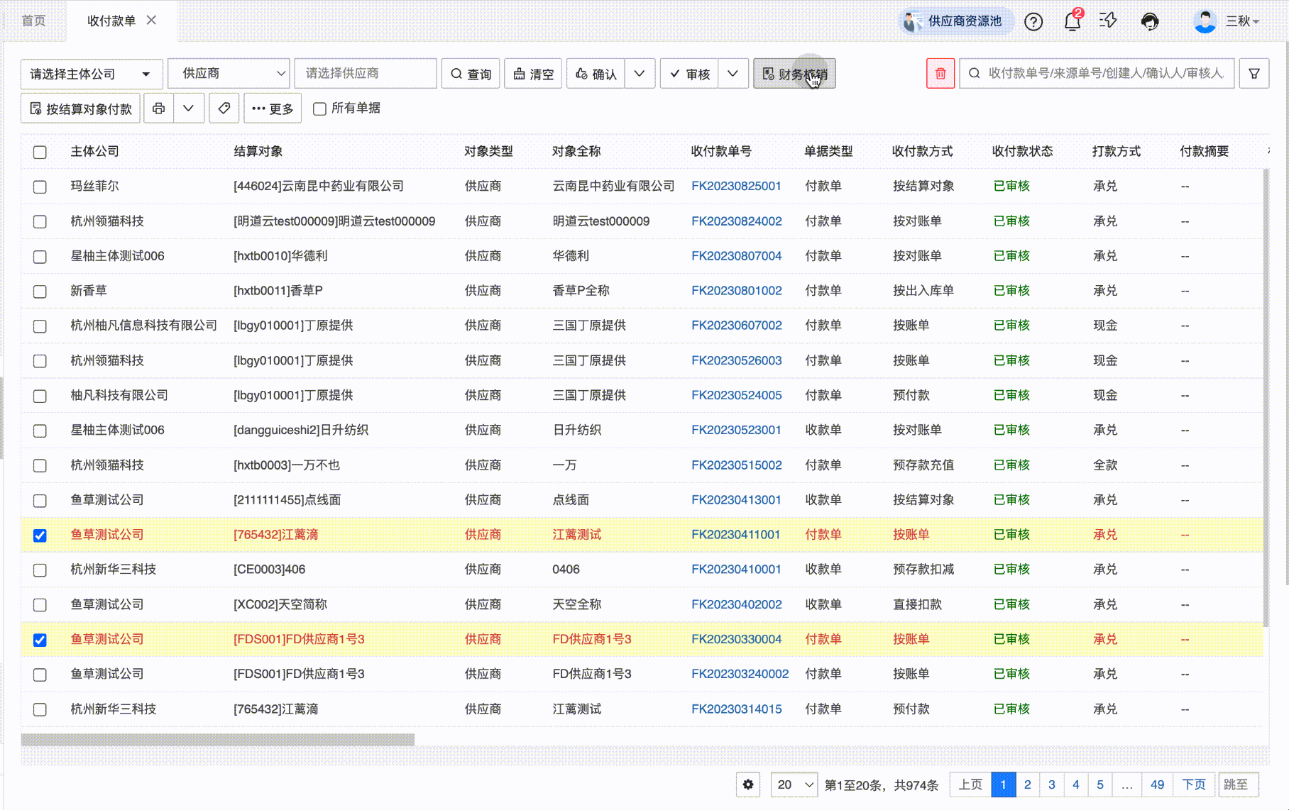 功能说明:收付款单现在支持批量核销了,放开了多供应商的限制。