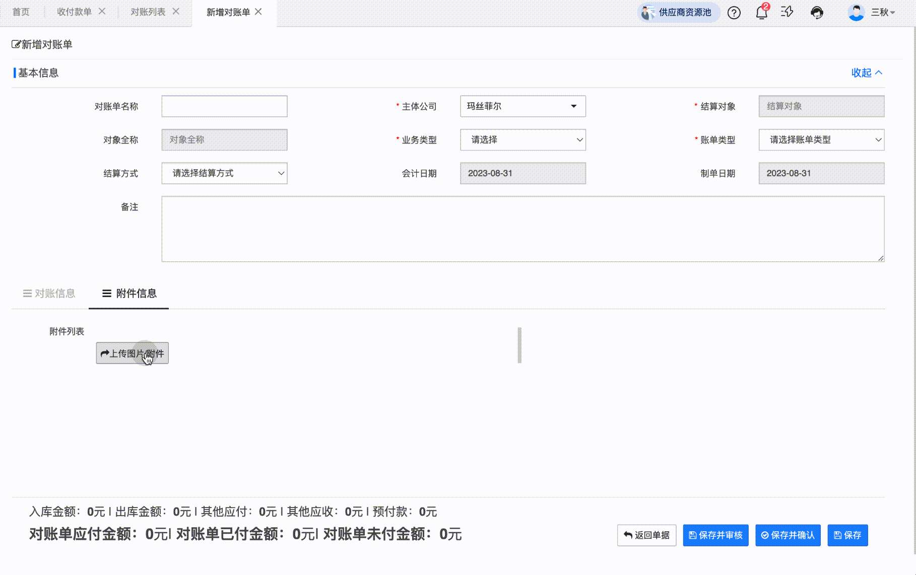 功能说明:对账单详情增加附件信息上传